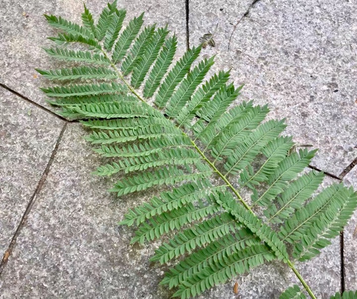 前两天,管理工人削下几枝凤凰木树枝,终于拍到完整的风凰木叶子了。图二图三两张蓝花楹,其小叶片呈尖状,而图三图四两张凤凰木,小叶片圆状收端。两树的整片复叶形状也是有区别的。当然去其它地点整棵树分辨,还是要再观察。
