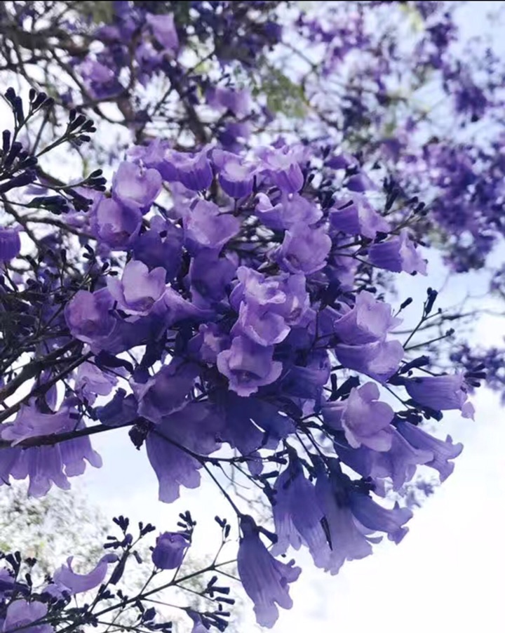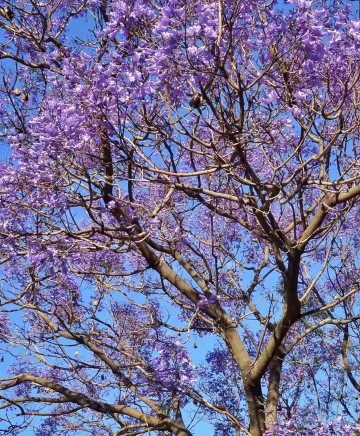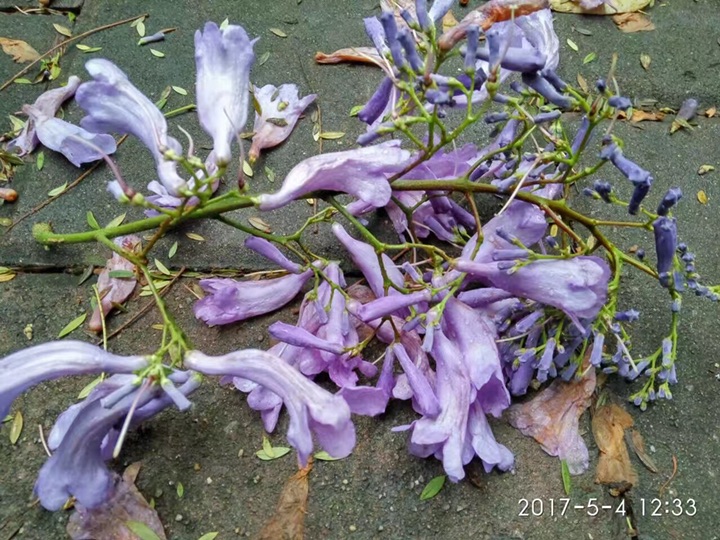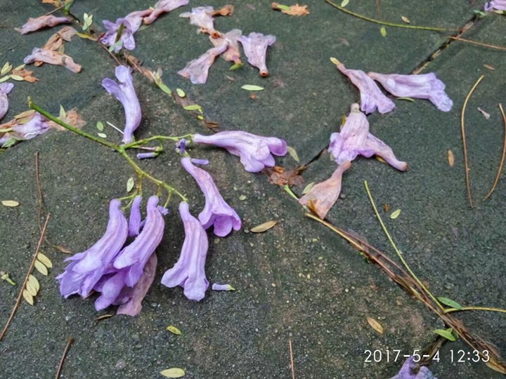 我所知道广州的蓝花楹并不多。暨南大学那有几棵,我用手机是无发拍到花的,太高了。而凤凰木多,最好拍的是海印桥头。所以,我在小区拍的是树上刚落下的蓝花楹花。蓝花楹的照片,是朋友探亲拍的外国蓝哦。