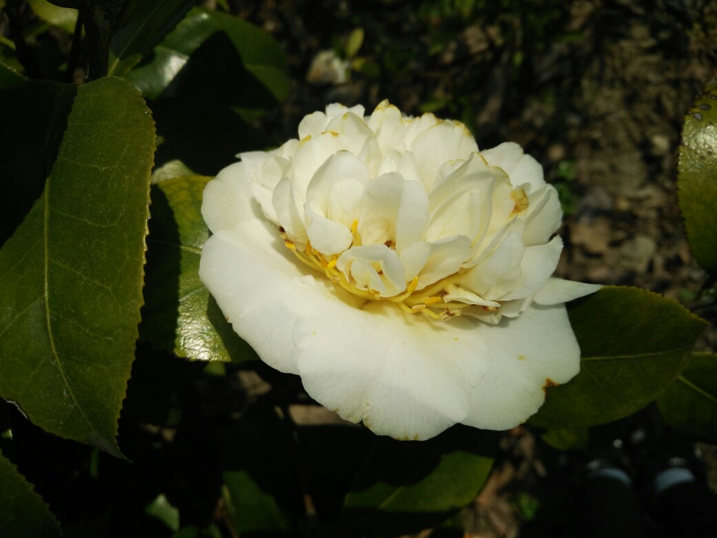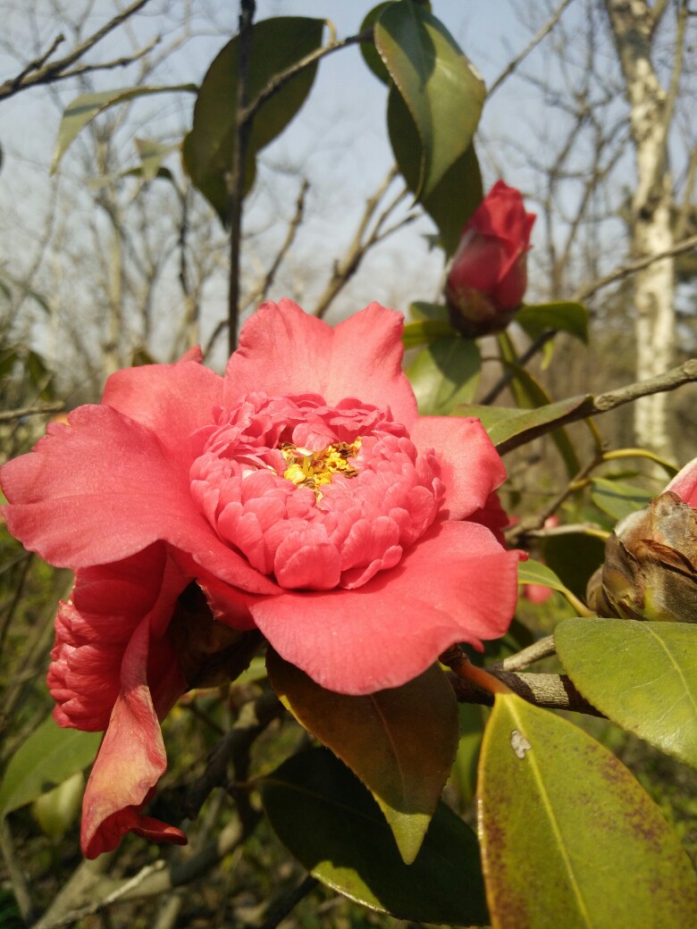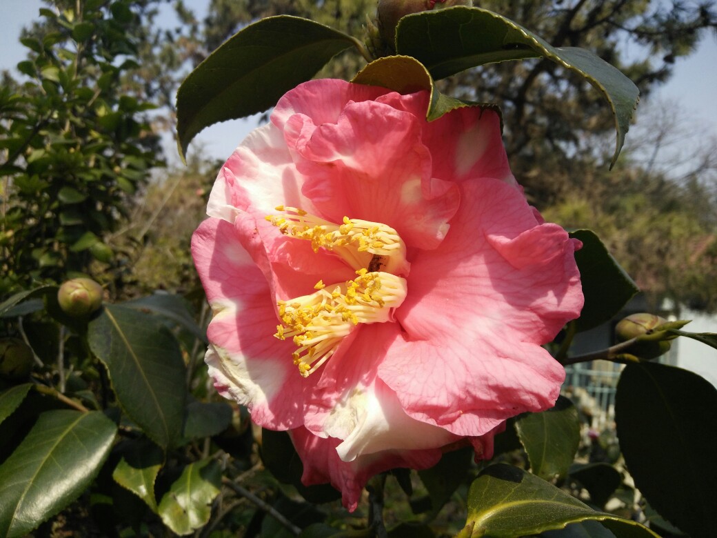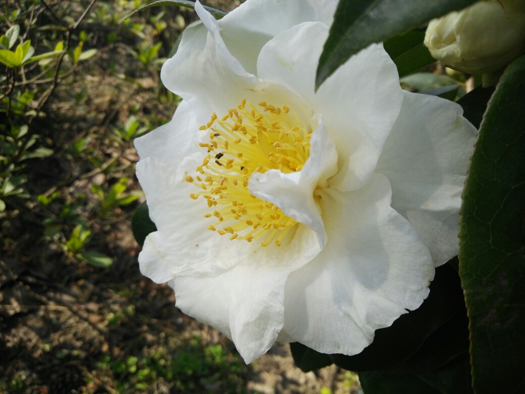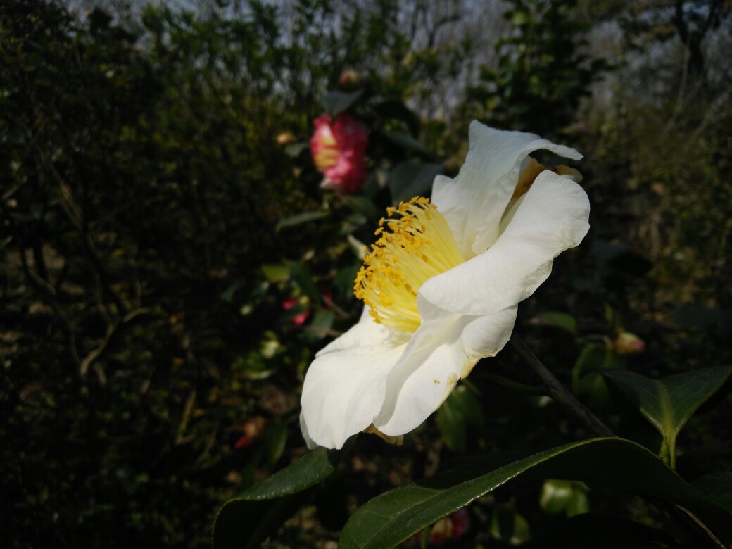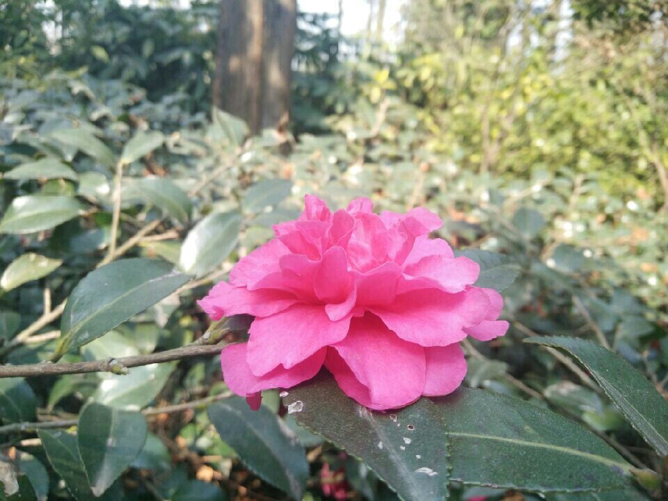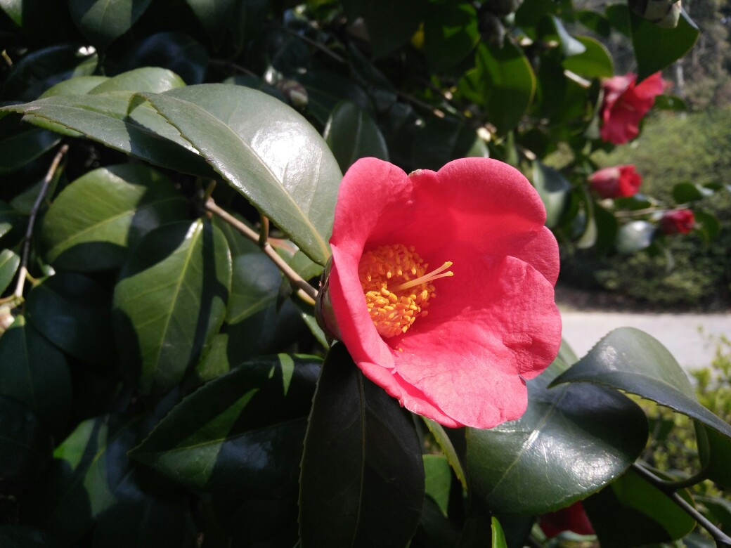 在最后出园的时候,我在路边发现了一群长的比山茶矮但花叶与山茶长得很像的茶梅!经常在形色上看到有山茶和茶梅之争,一直不清楚她们之间到底要怎样去区分呢?