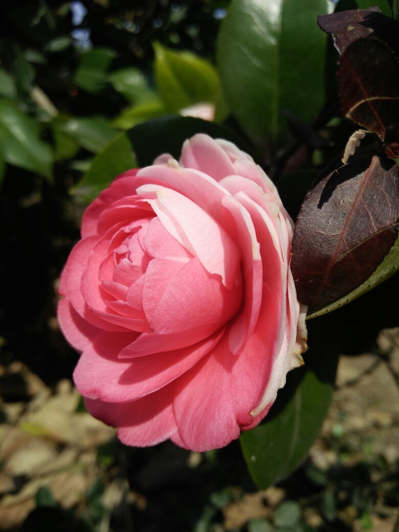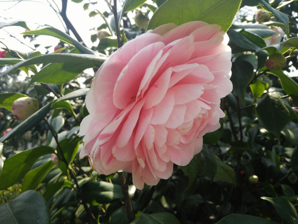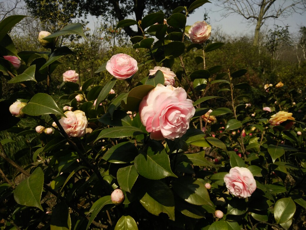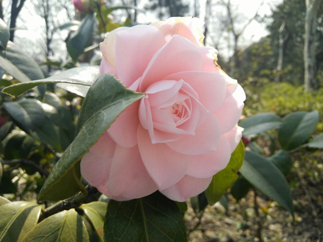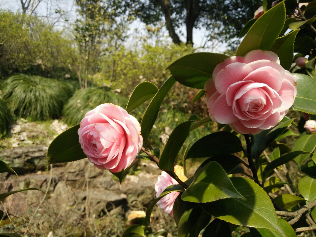 3月4号专门去上海植物园找番红花的我在拍完番红花后决定到处走走然后再回去拍,本来只准备随便走走留点内存再回去拍番红花的,但在我路过水池的时候,往旁边的小山包(土包)上瞟了一眼,居然发现几朵粉嫩粉嫩的山茶花!经不住诱惑就翻了上去,这里并没有专门的赏花的路,自然也没有人注意到这儿,我越过低矮的树篱,到上边一看,原来还不只这一种!好几种我之前都没见过的山茶花在阳光下发着迷人的光