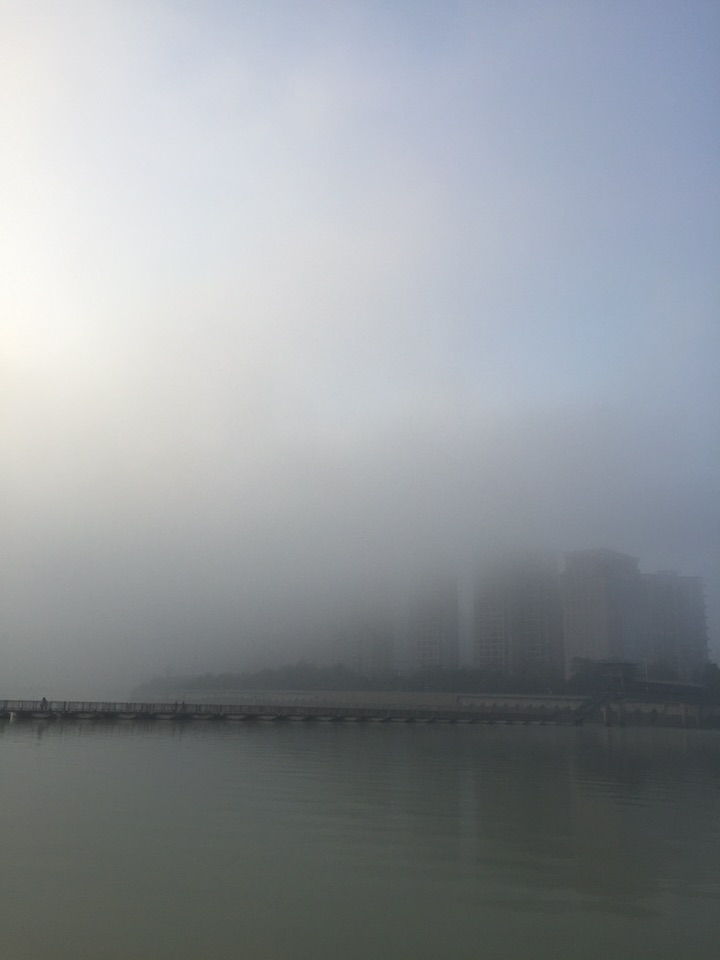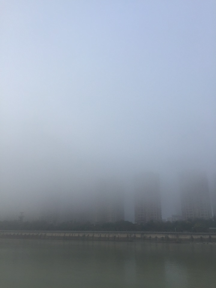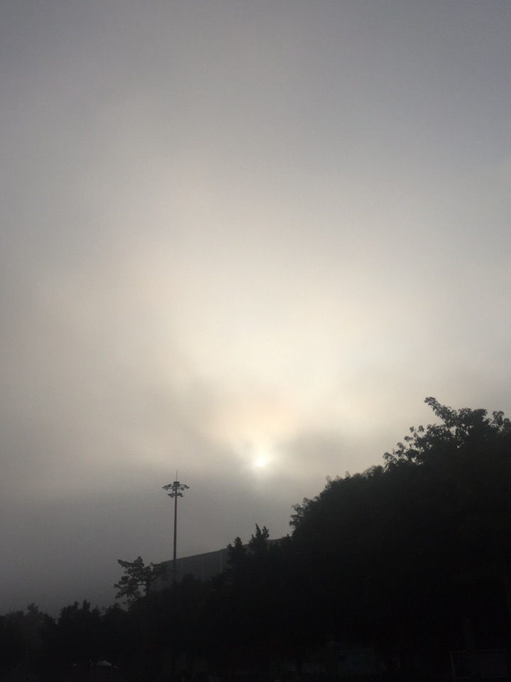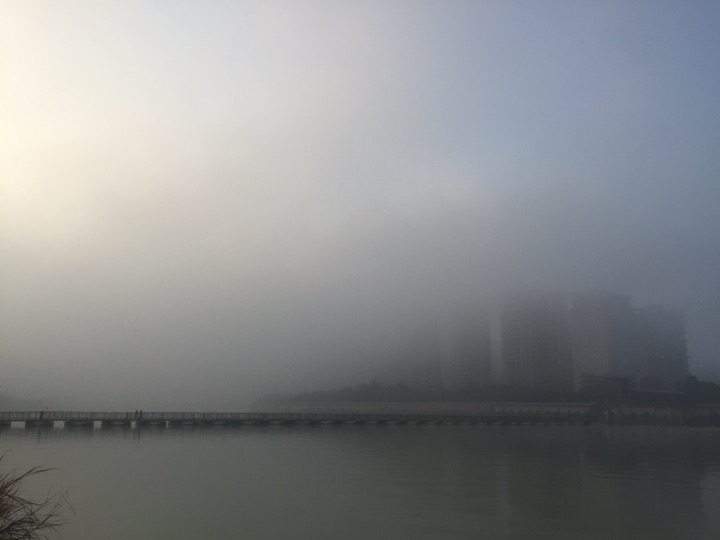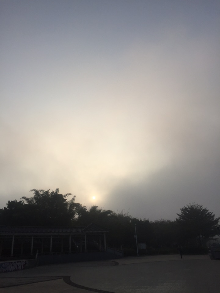 浓雾中,𣌀光隐现,又是一个艳阳天。(20171229)