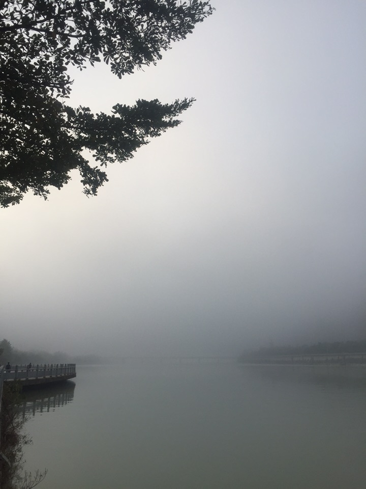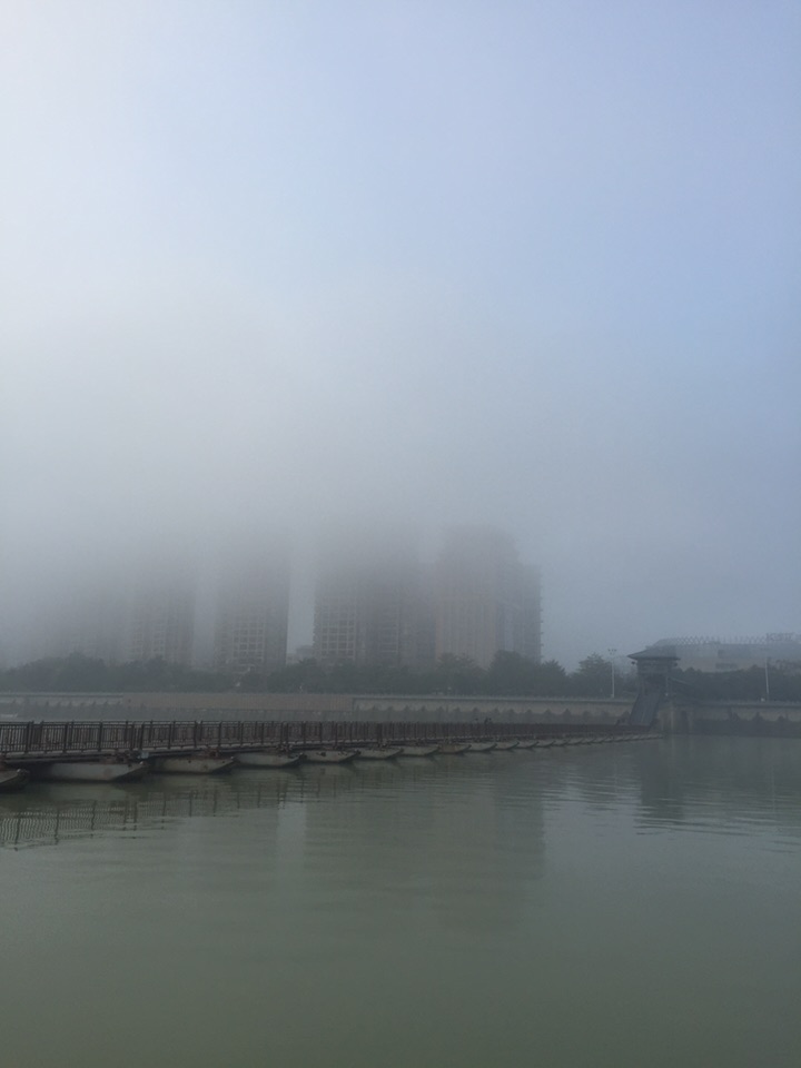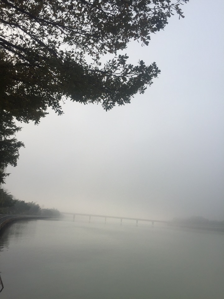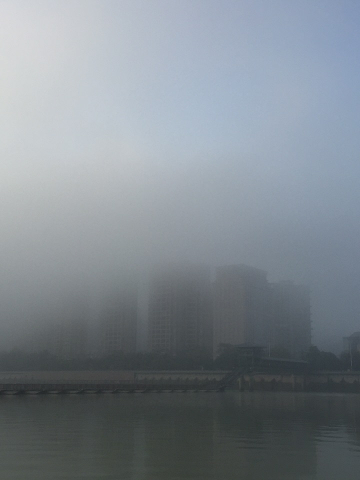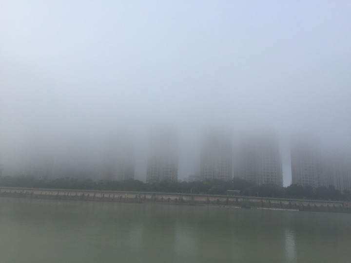 浓雾中,𣌀光隐现,又是一个艳阳天。(20171229)