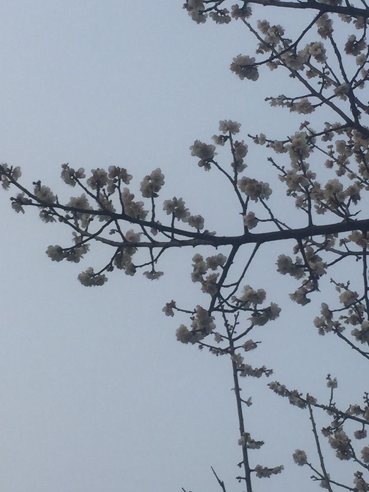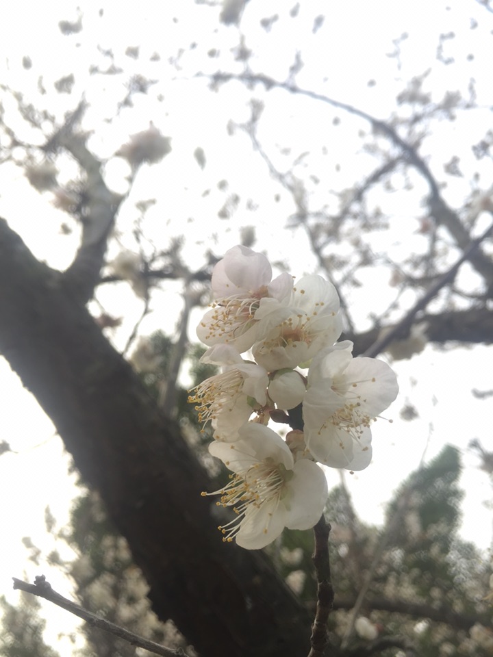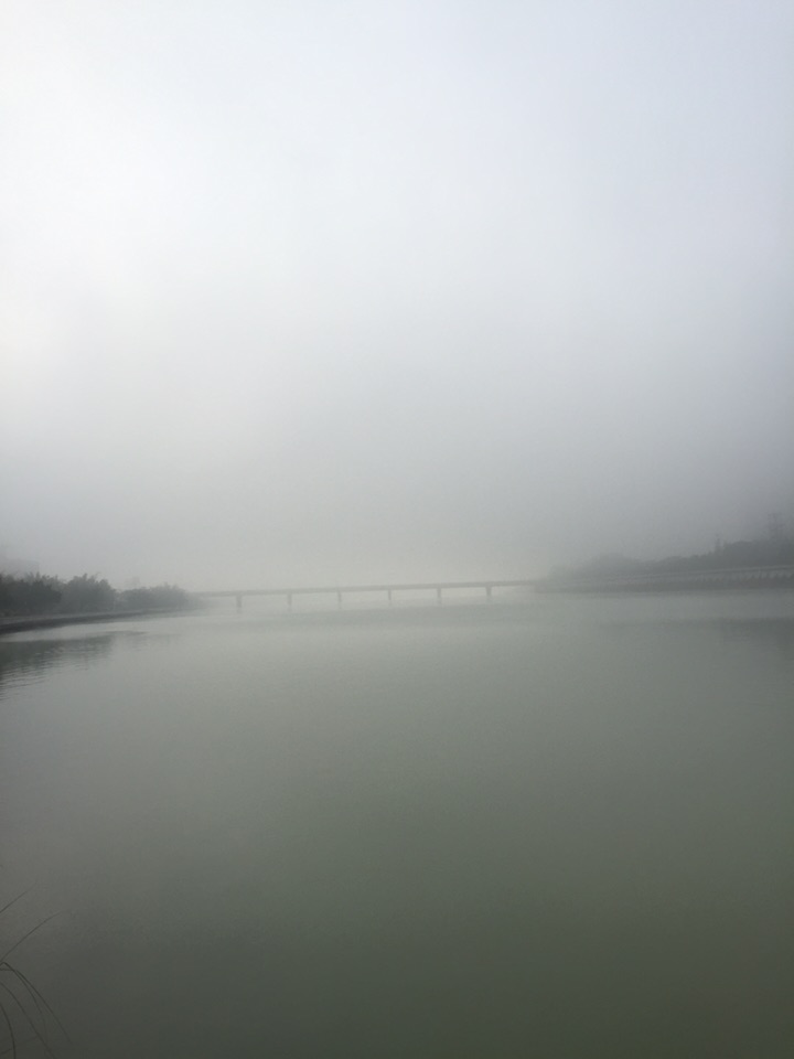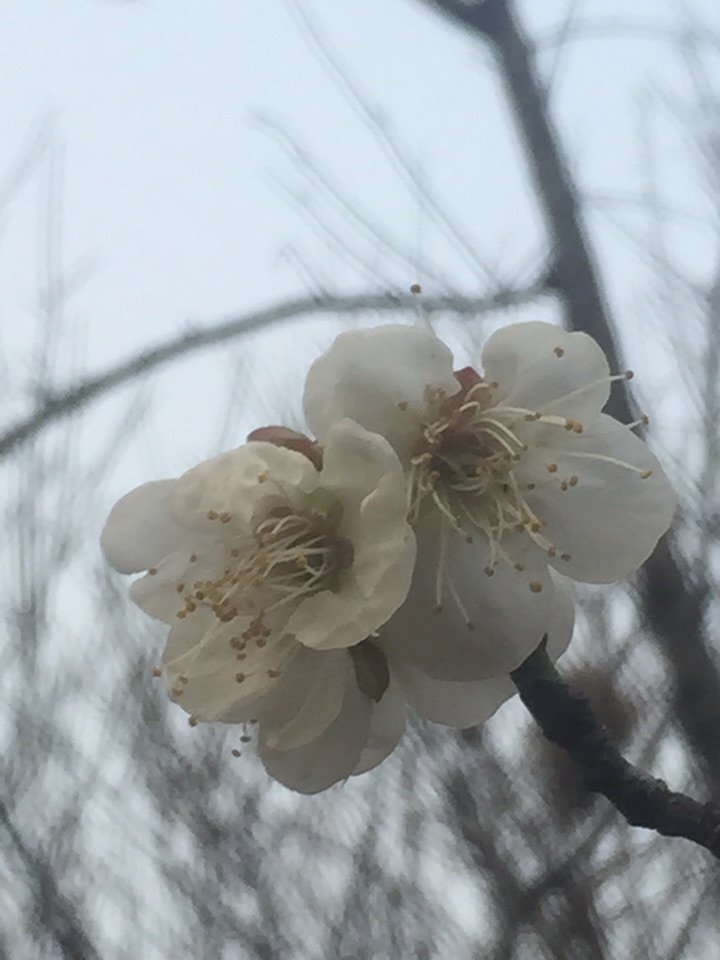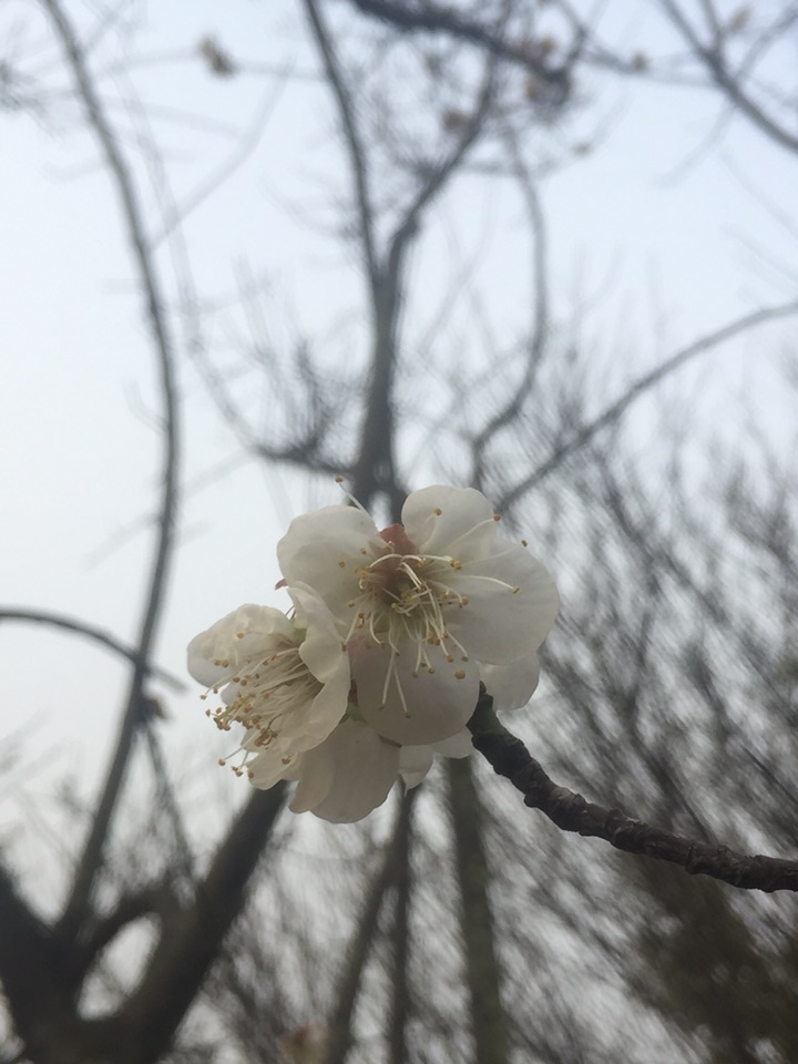 雾锁梅江,失楼台,唯有白梅俏立枝头,仍傲然。
