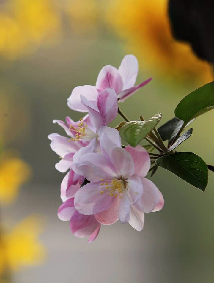文人们常用海棠寓意佳人,表达思念、珍惜、慰籍从容淡泊的情愫。又因为“棠”与“堂”谐音,海棠与玉兰、牡丹、桂花相配,寓意“玉棠富贵”;与菊花、蝴蝶相配,寓意“捷报寿满堂”;与五各柿子相配,寓意“五柿同堂”……