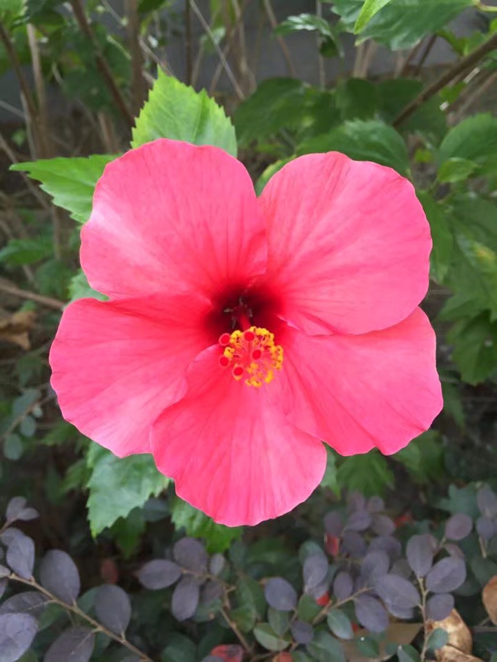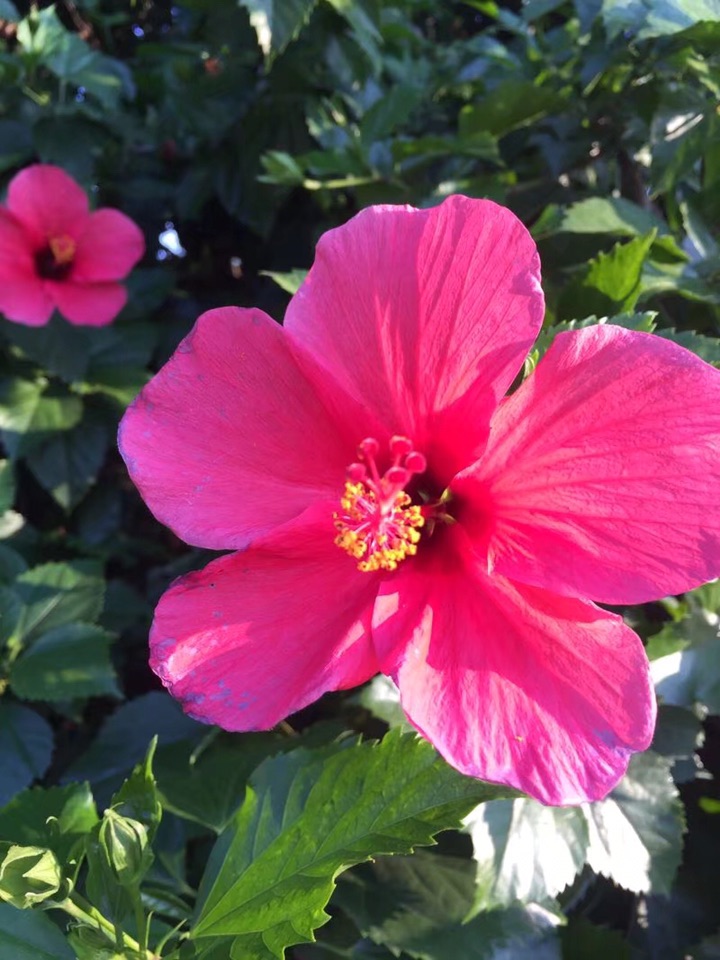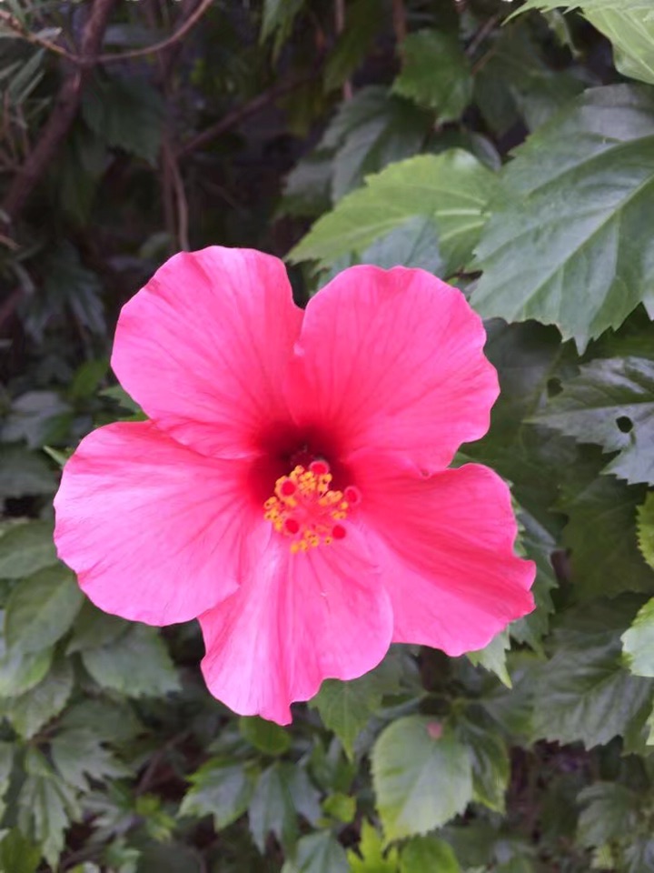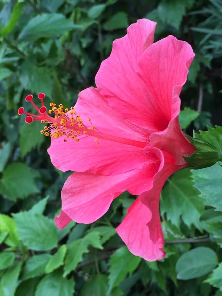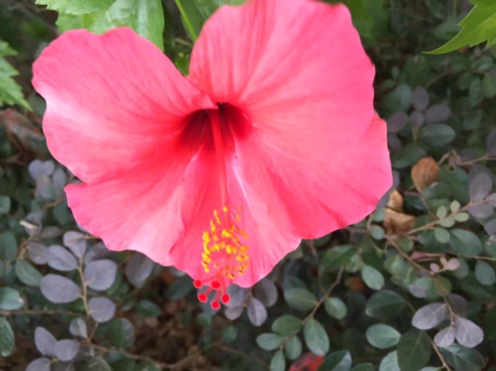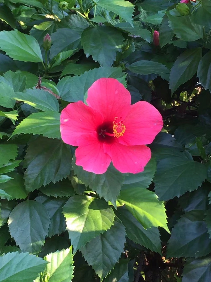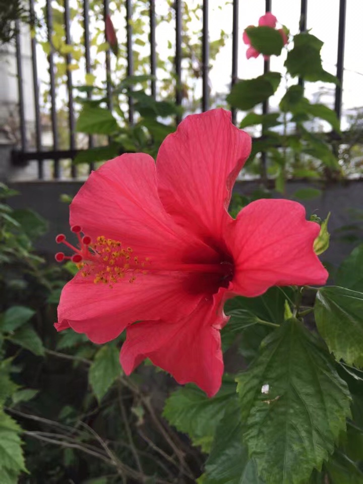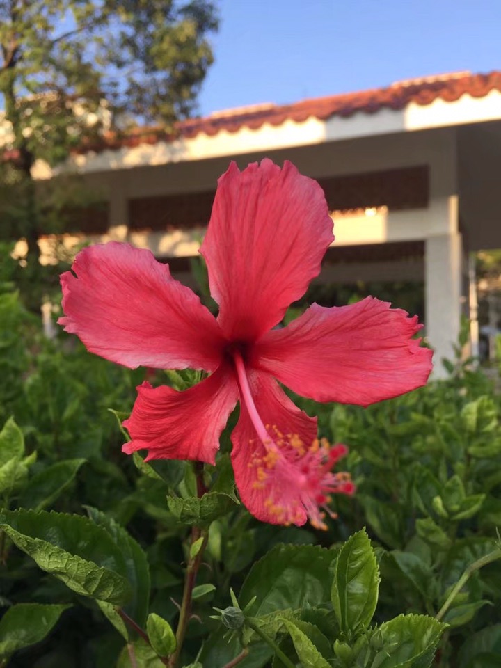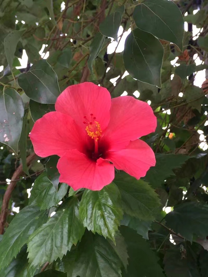 朱槿的美丽从春到冬。或许,在春日里,朱槿花儿并不特别出众,但是到了冬日,它红红的颜色却让肃杀的冬日多了一份温情。(20171230)