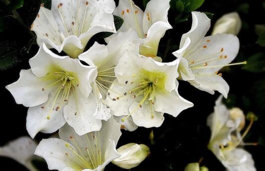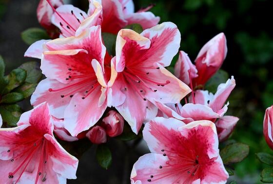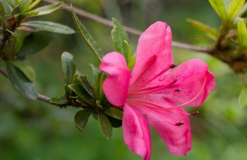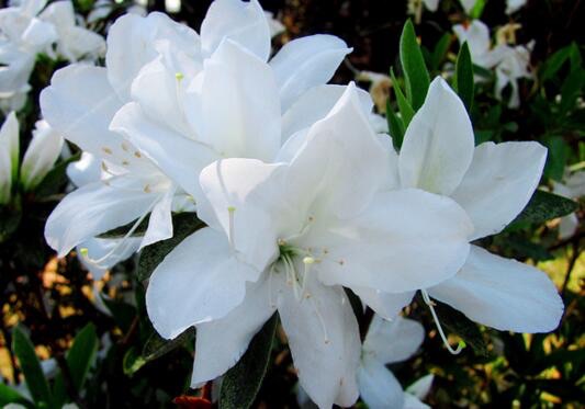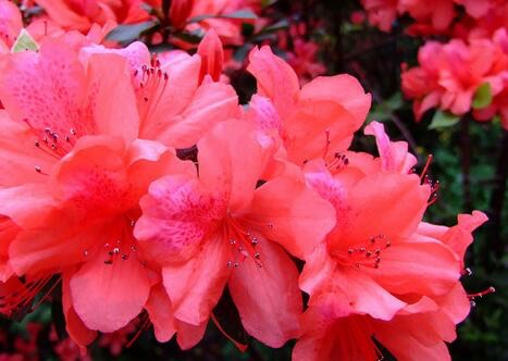 杜鹃花是我国三大天然名花之一,诗人白居易有诗写道:“闲折一枝持在手,细看不是人间有。花中此物是西施,芙蓉芍药皆嫫秀。”可谓是对杜鹃花的最高赞誉。所以,杜鹃花又有"花中西施"之美誉。 杜鹃花,又叫映山红。是那如火如荼的红花,殷红似火,把整个山都映红了,就像霞光洒落;又象羞红了脸的小女孩。杜鹃花除了红色的外,还有多种颜色,五光十色。花开的时候:红的,红殷似火,热情奔放;白的,就像晶莹的雪花,纯洁无暇。红中带白,粉红的芯就像女子,白色的边就象洁白的纱;黄的,黄金灿灿;紫的,有如宝石。有象浓装艳服,丹唇皓齿,象青春少女招摇过市;有似淡著缟素,谦谨大方,象成熟少妇;有芬芳沁人,象少女怀春。体态多样,风姿万千。真是:回看桃李都无色,映得芙蓉不是花。