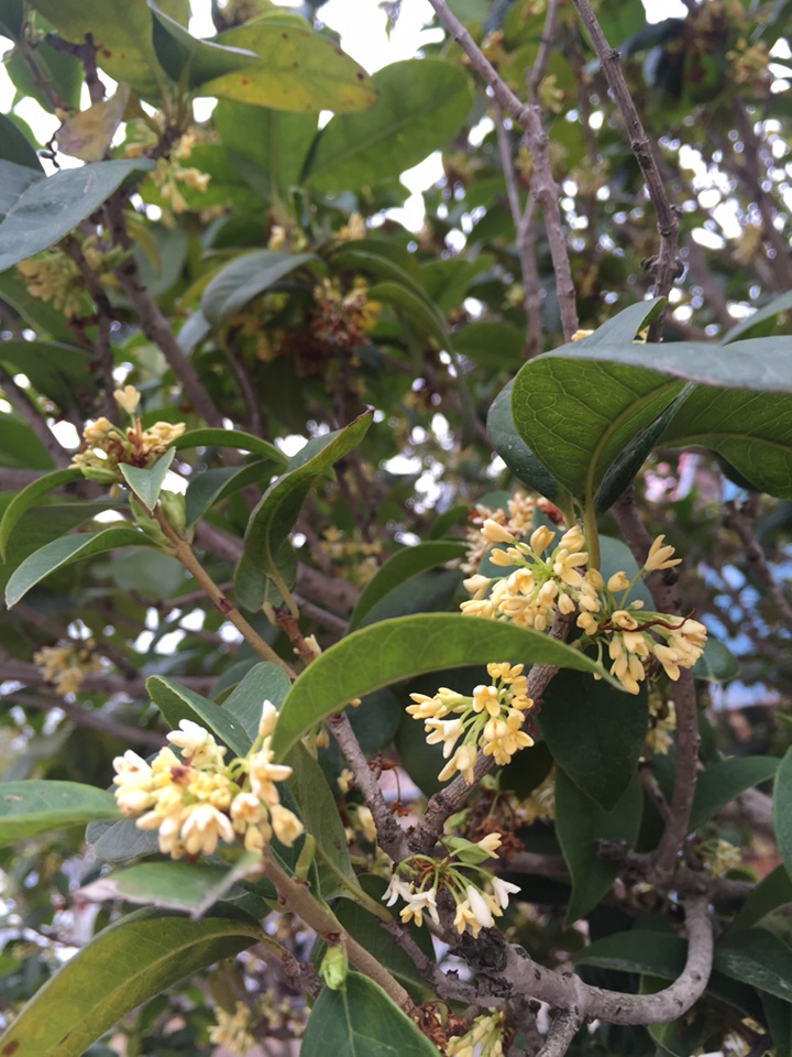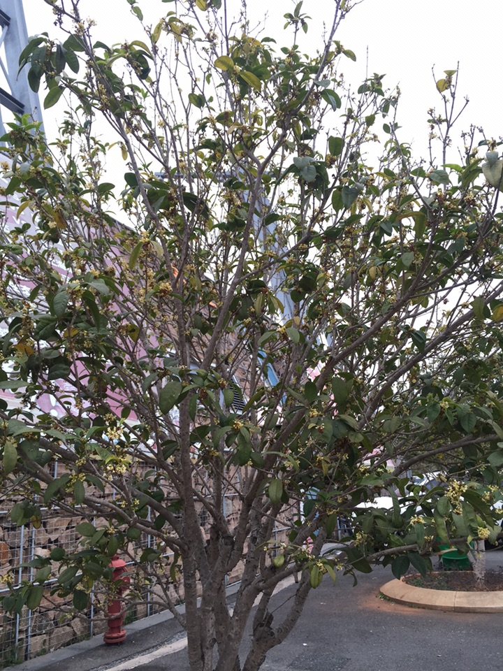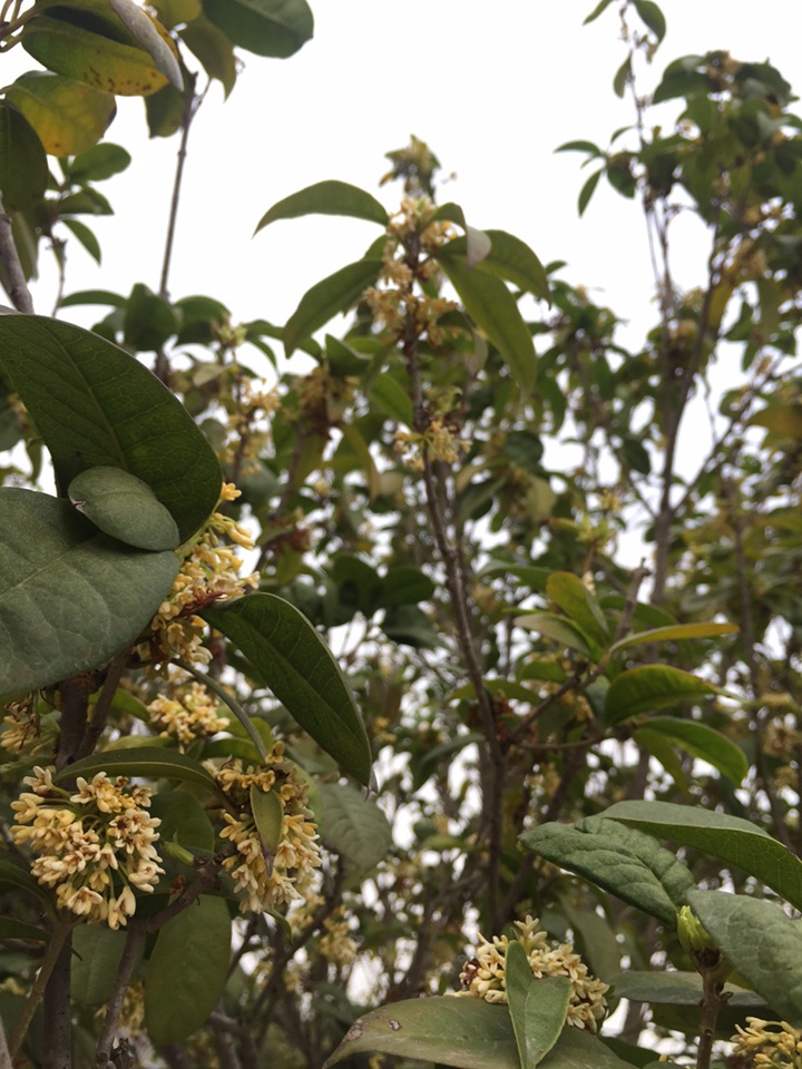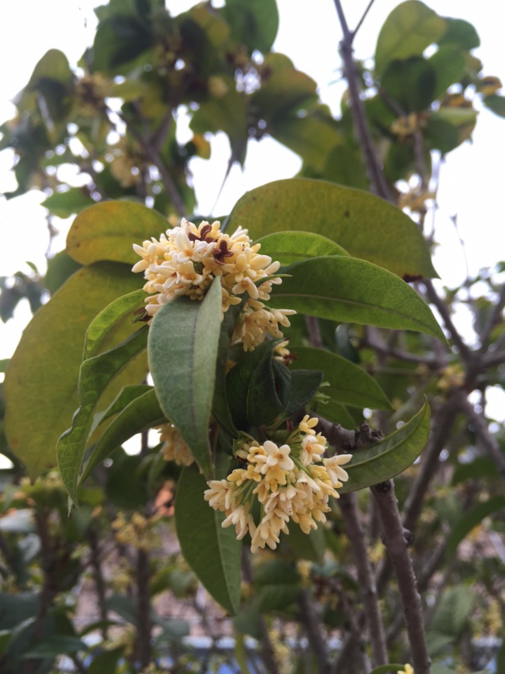 散步在体育场外,幽香阵阵。围绕着体育场的几十棵桂花树,从农历八月开始盛放,开了一茬又一茬,现在依然是花开不断,香气沁人。 (20180105)