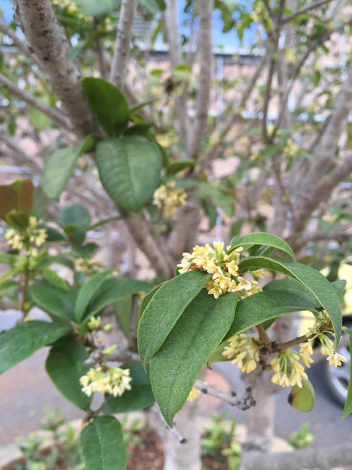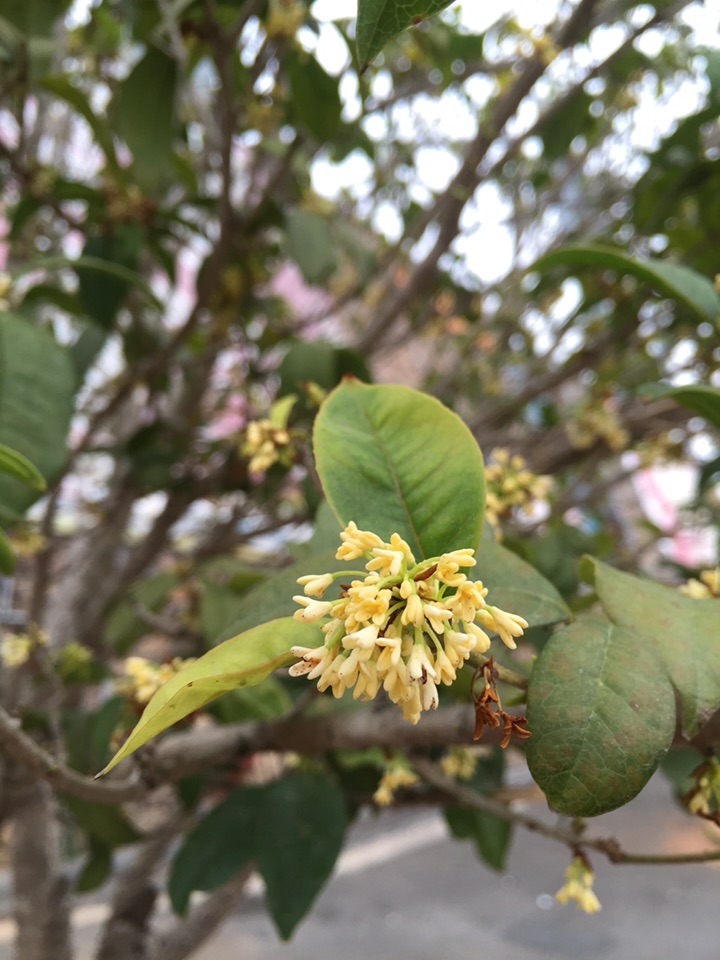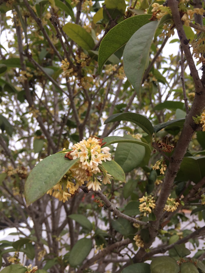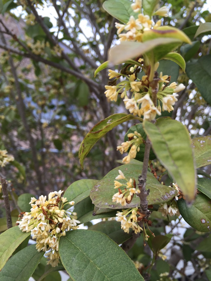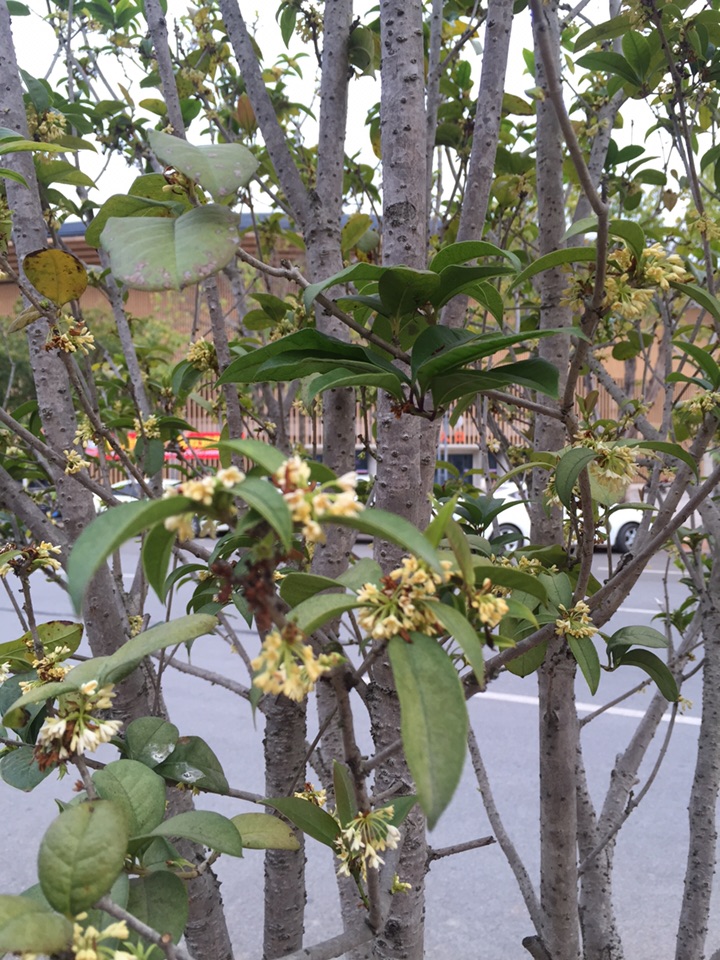 散步在体育场外,幽香阵阵。围绕着体育场的几十棵桂花树,从农历八月开始盛放,开了一茬又一茬,现在依然是花开不断,香气沁人。 (20180105)