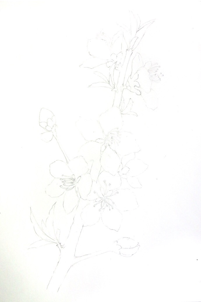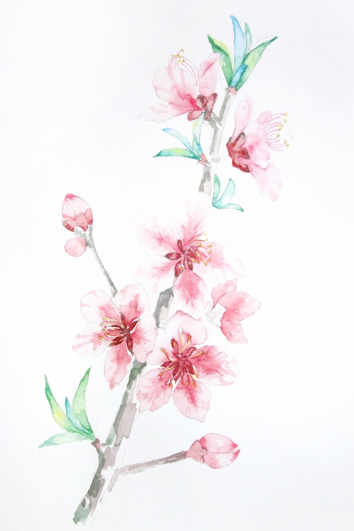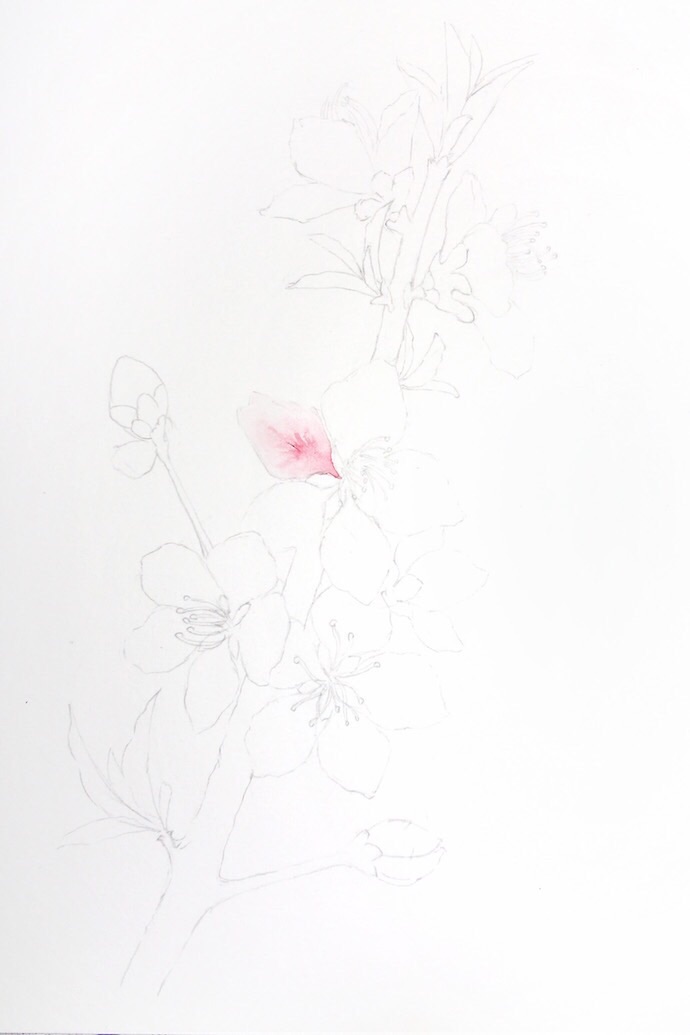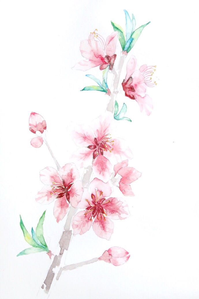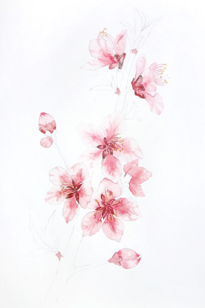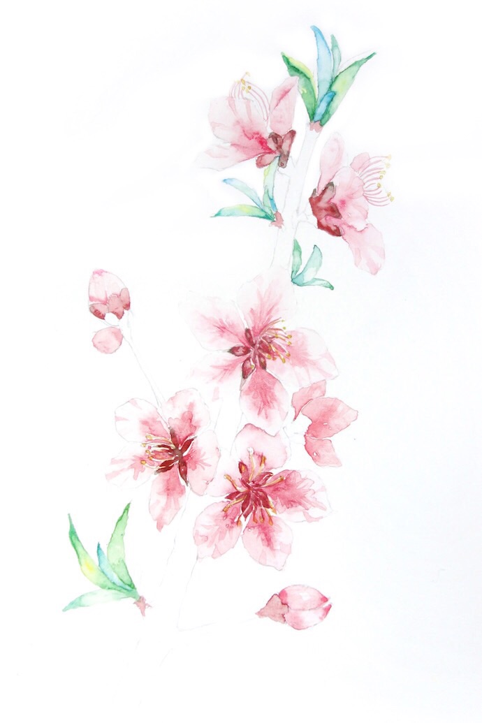 大红加少许紫色由花朵根部向外画扇形,然后用干净的笔蘸清水将颜色向边缘晕染开来。