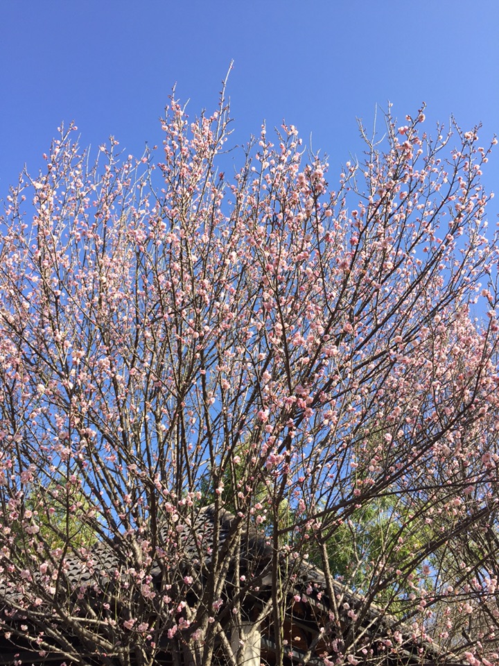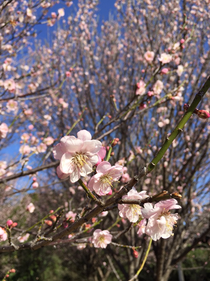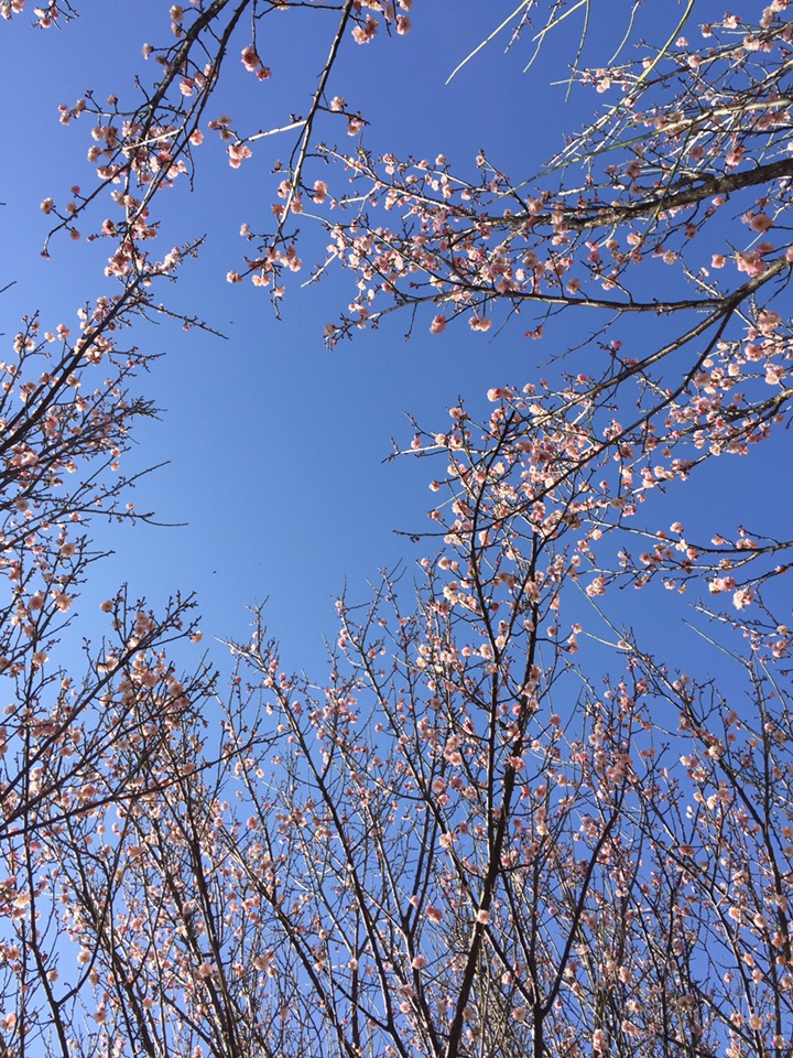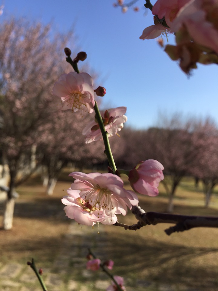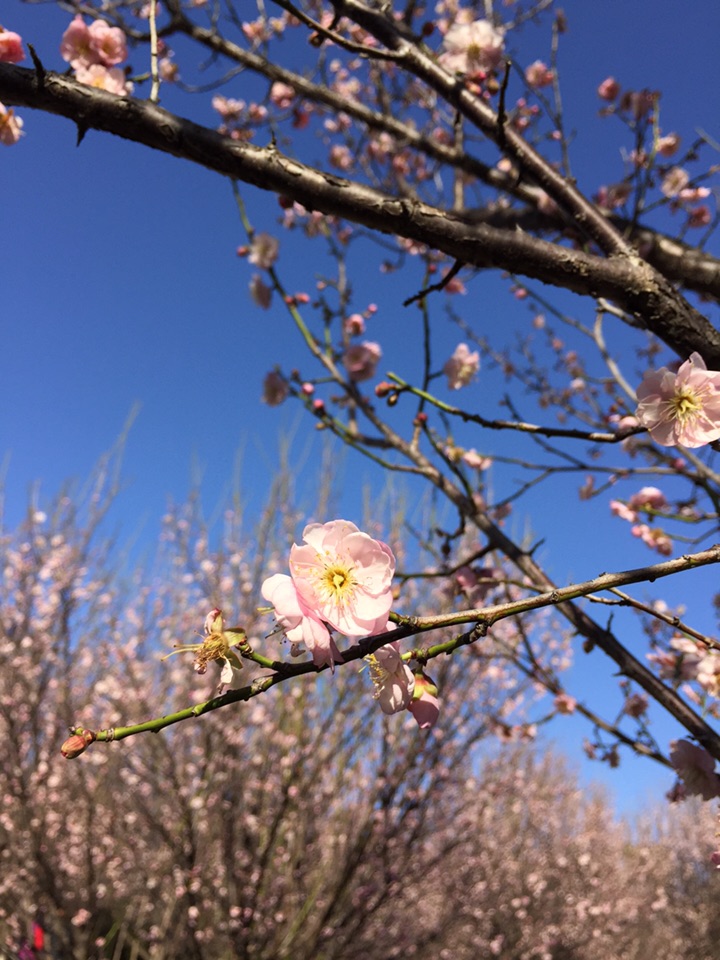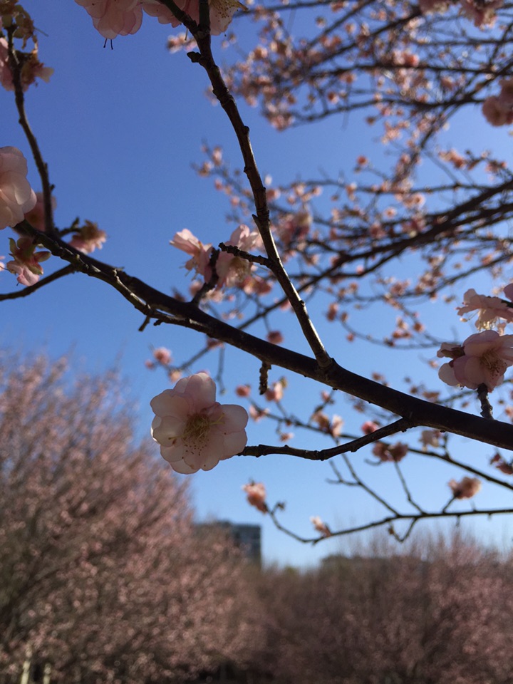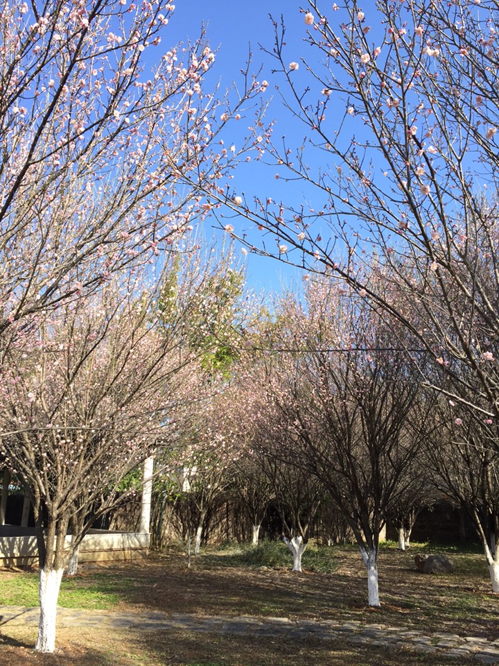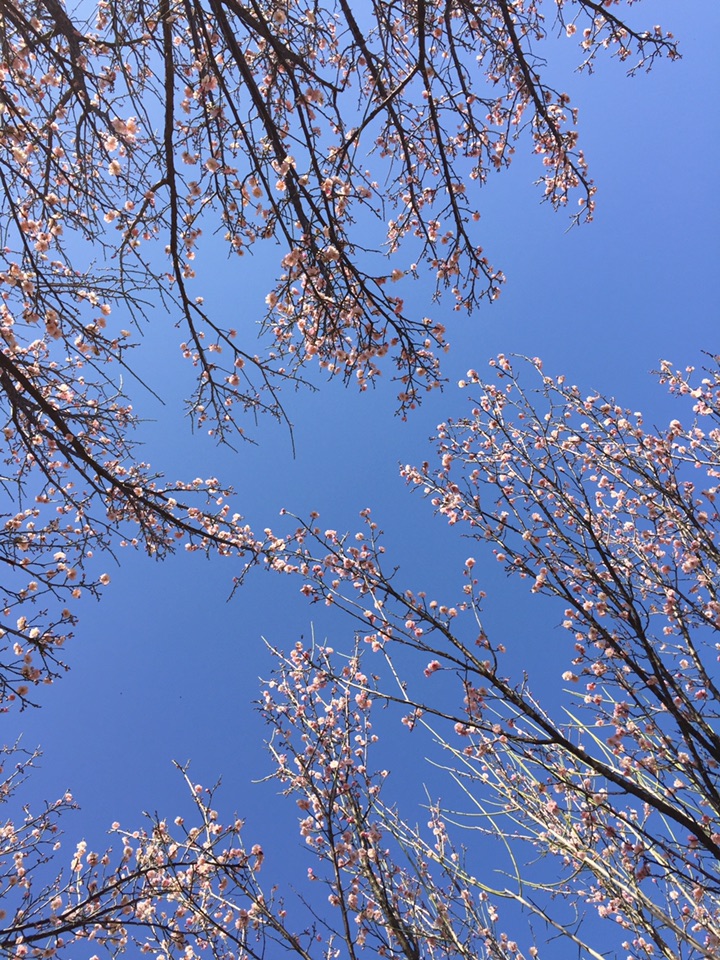 坐下,仰望天空:碧空湛蓝,阳光明媚,繁花似点⋯⋯好吧,那就安静地坐着欣赏吧。且待风起,吹落数点寒梅,细细数之⋯⋯(20180111)