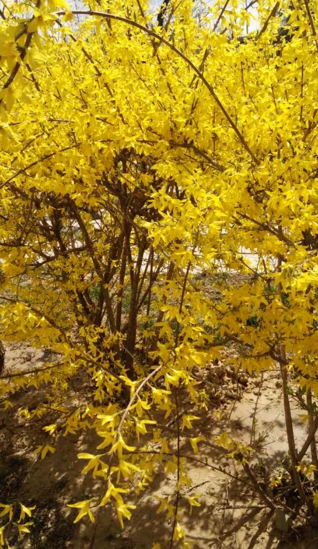 这连翘,犹如一块块的金砖,摘下一朵连翘,犹如拿着黄黄的金砖,如果种下一大片连翘,就仿佛是金色的海洋!