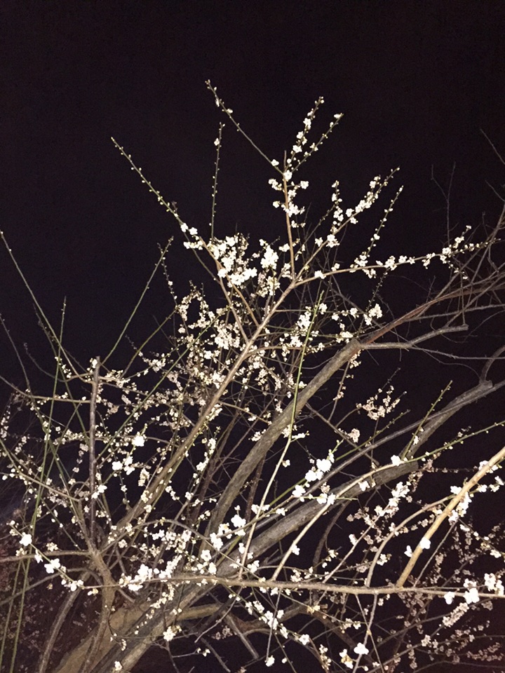 晚上,散步于广场。白天里吸睛的梅花变得内敛起来,稀疏的倩影,在路灯下,有了一点点古典的气息,只可惜今晚无月⋯(20180116)