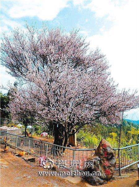 此梅傲立梅州市梅县城东镇潮塘村,1985年被发现,经专家考证为“宋梅”,树龄千年,填补了我国野生古梅分布之 空白,授名“潮塘宫粉”,为国家一级古树,乃广东树龄最长之古老花梅,编入《中国梅花》,是全国屈指可数之几株古梅之一。古梅树高约10米,冠幅16米,主干直径75厘米,距地面50 厘米处分成双干,粗者直径49厘米, 细者直径为31厘米。古梅花朵硕大且厚,花色粉红,重瓣馨香,花径约2.2厘米,花期为每年12月中旬至次年1月中旬,花期约45天。据资料介绍,中国现存最古老梅树为湖北黄梅县蔡山之晋梅,其次为浙江天台国清寺之隋梅,然经科学测定大都非原木古梅,而是原木之分木,或是后人所培植。而梅州潮塘之宋梅,虽树龄略逊,然为原木成长,其价值却超其上,尤显珍贵。