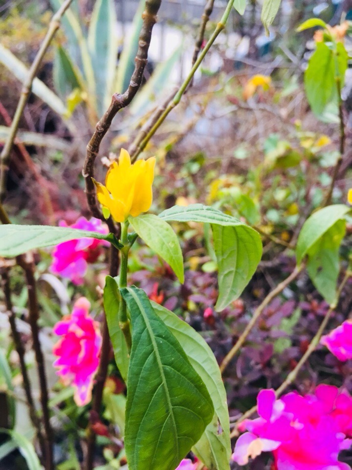 【 金苞花】爵床科厚穗爵床属。这花从秋天一直开到现在,最后一波,花也只一点点大了。养份耗尽,春天要换土了。