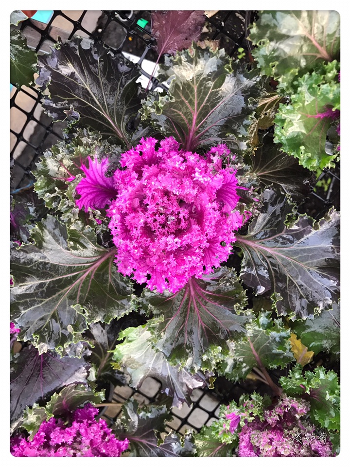 园艺品种形态多样,按高度可分高型和矮型;按叶的形态分皱叶、不皱叶及深裂叶品种;按颜色,边缘叶有翠绿色、深绿色、灰绿色、黄绿色,中心叶则有纯白、淡黄、肉色、玫瑰红、紫红等品种。羽衣甘蓝在美国非常受欢迎,因为含钙率是10%,维生素A133%,维生素C134%。