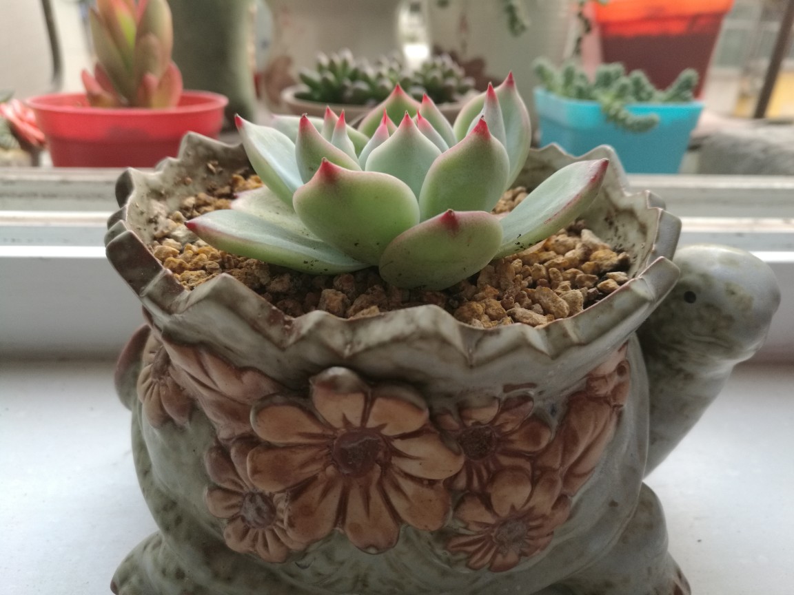 我家宝贝的最爱,小乌龟背上的吉娃莲,这俩一配更萌了。现在老叶子消耗掉了不少,中间的花苞更紧凑了
