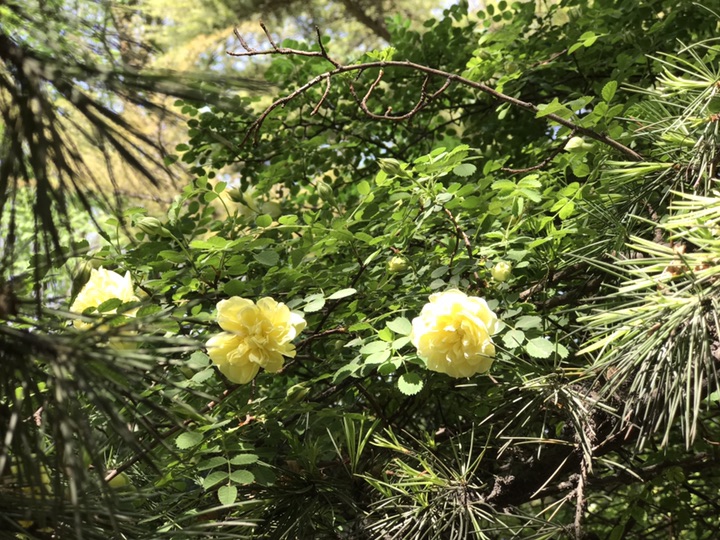 在京城新居后面的院子里看见一树黄花,在姹紫嫣红的三春时节,给人眼前一亮的感觉。
