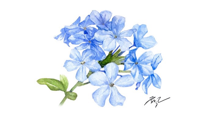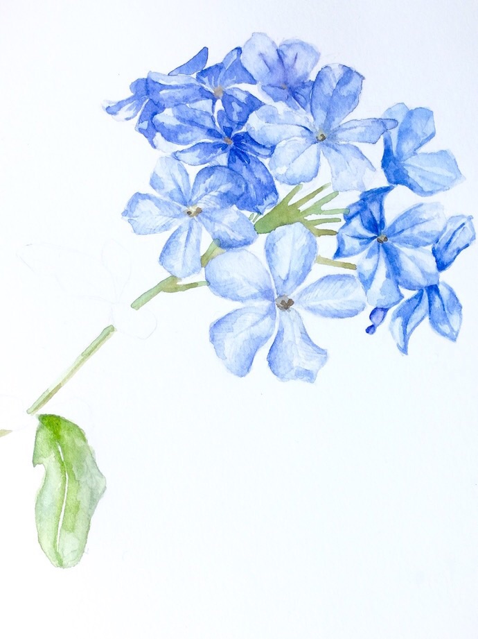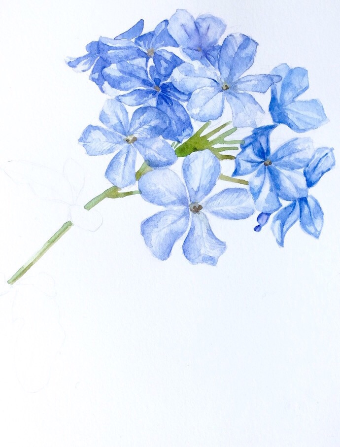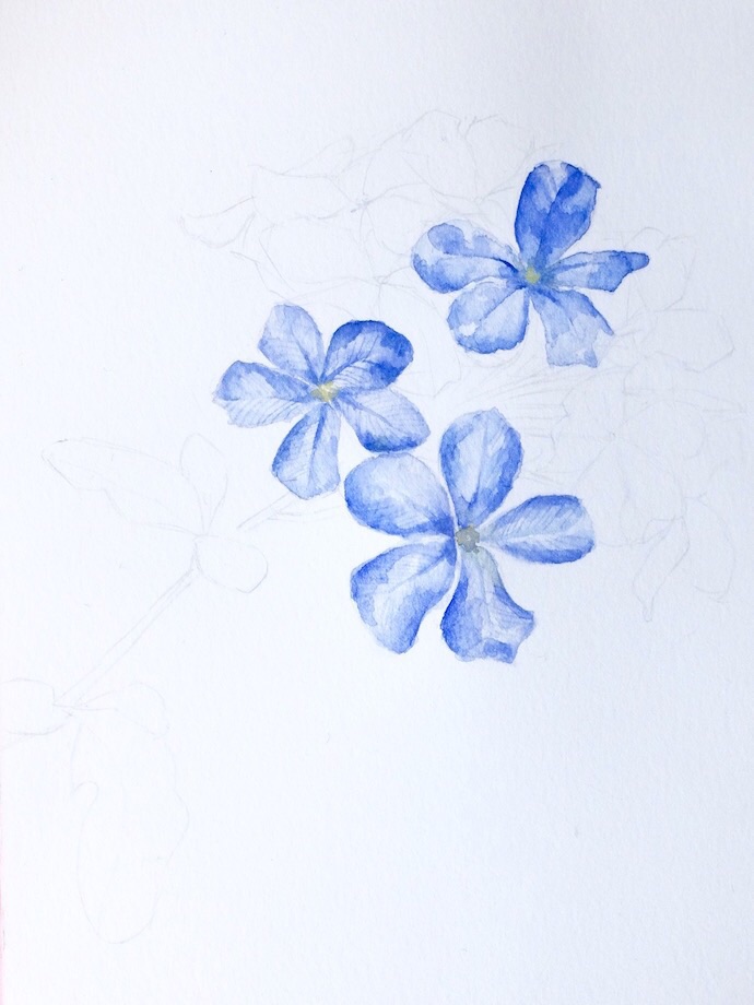 毛笔过滤掉多余的水份,蘸普蓝和少许紫色加深花瓣的暗部。
