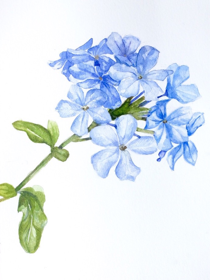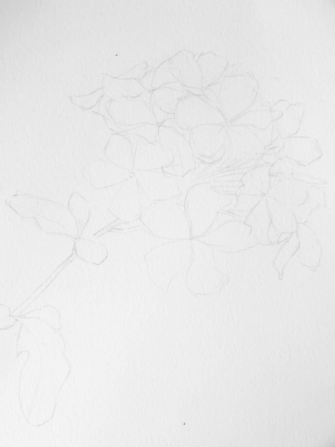 用铅笔在纸上勾勒出蓝花丹的大体比例。