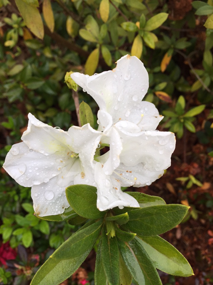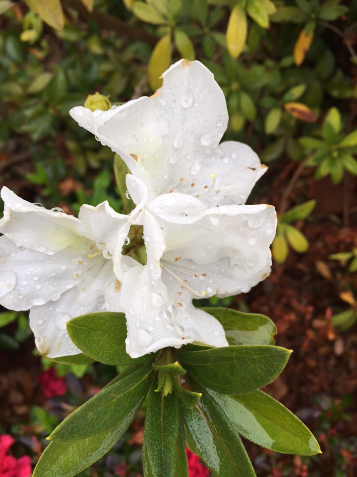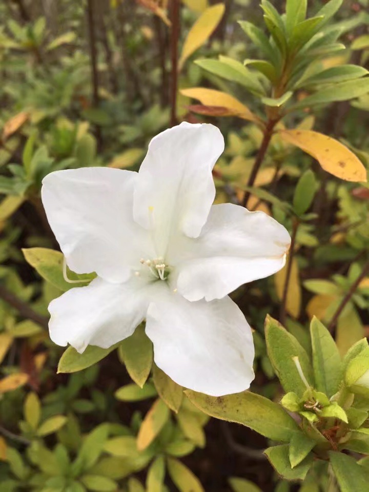 色彩艳丽的杜鹃看多了,这种纯白色的是第一次见。白色,总让人觉得纯而柔美。