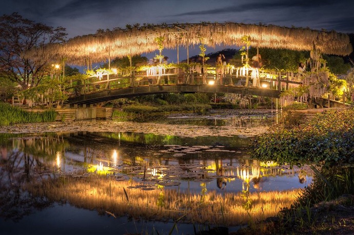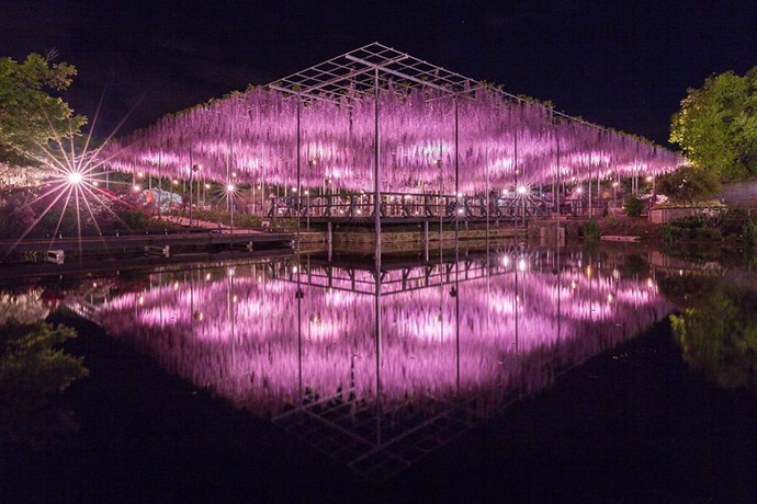 夜色中的Ashikaga Flower Park,同样如梦如幻。