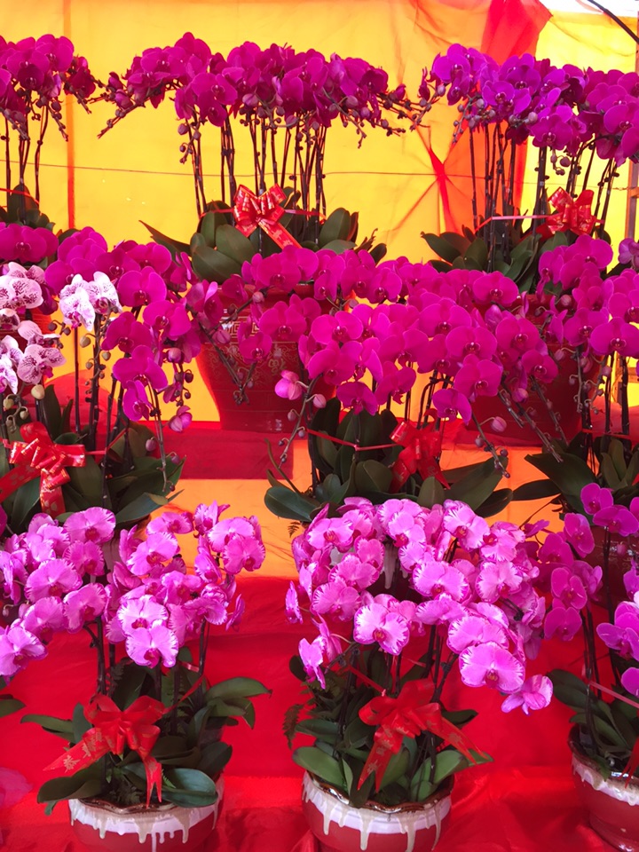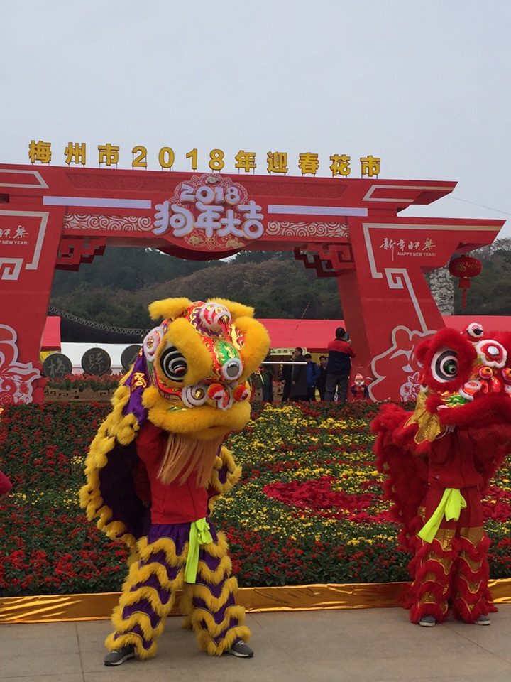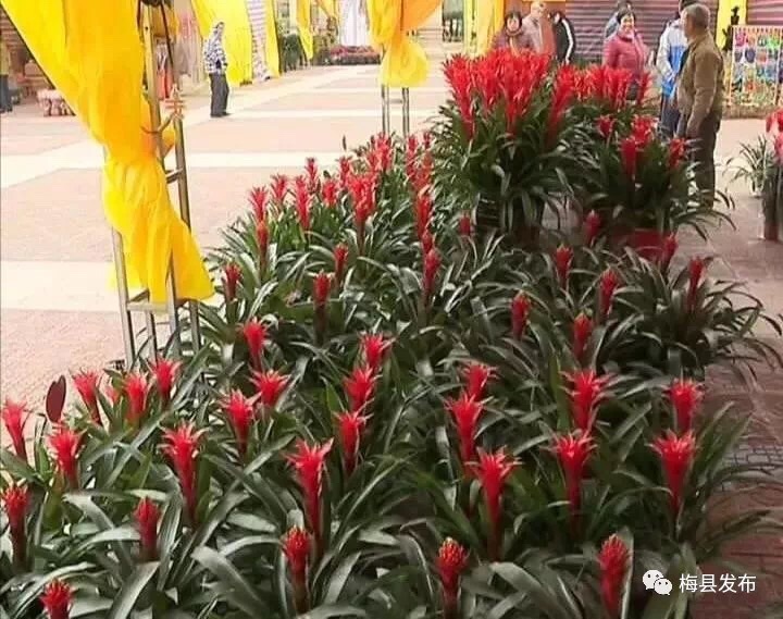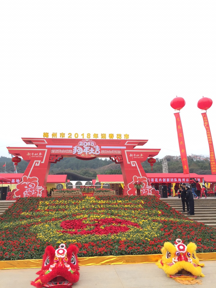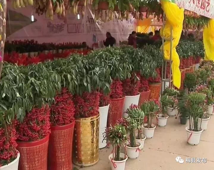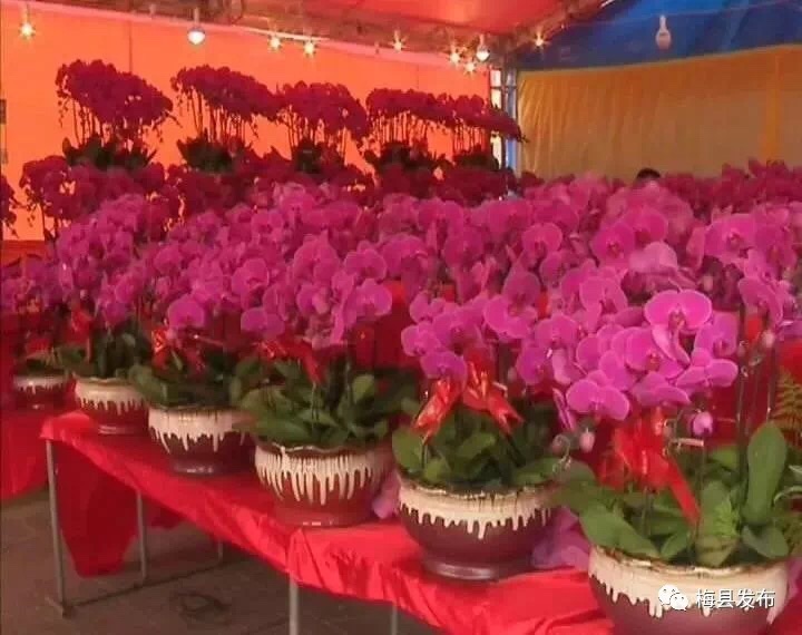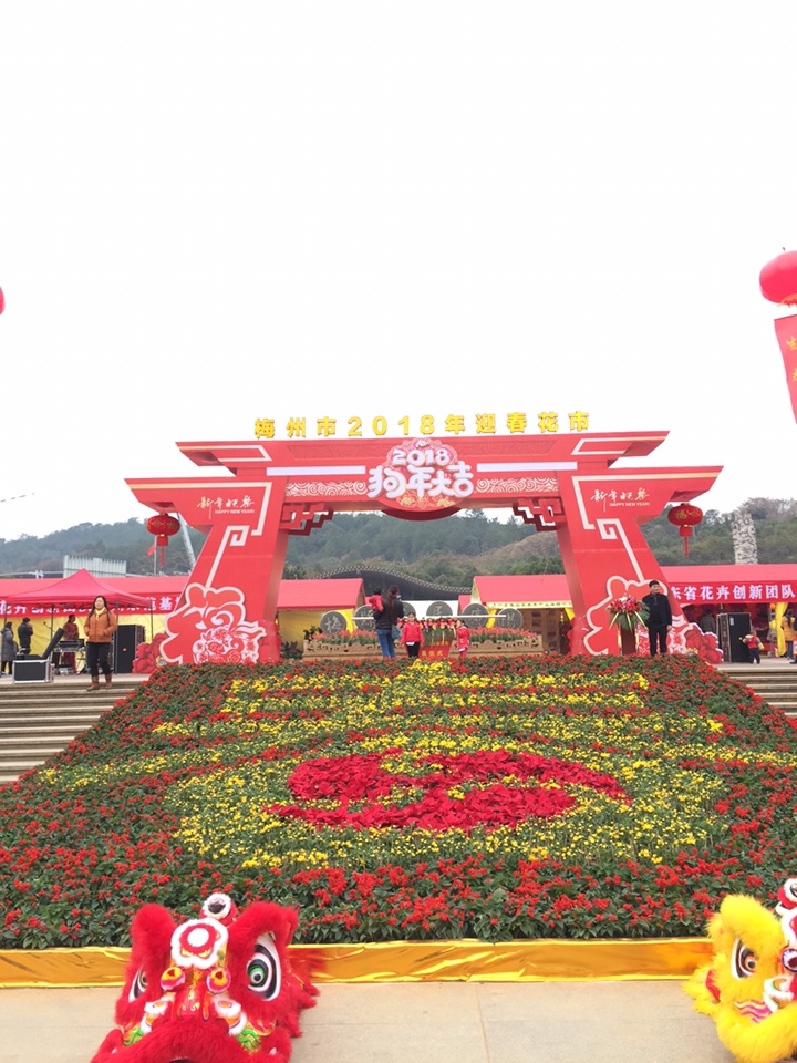 伴随着热闹的锣鼓声和礼炮声,2018年梅州市花市正式开幕。门楼前,一个用花草装饰而成的“春”字非常醒目,红灯笼、“狗年大吉”字样等装饰格外喜庆。展区内,不仅有造型精致的蝴蝶兰、根艺等精品,也有鸿运当头、年桔、发财树、黄金万两等年花,还有多肉、仙人球等小盆栽,各式各样的花卉盆景争芳斗艳。