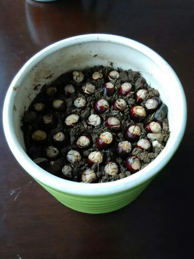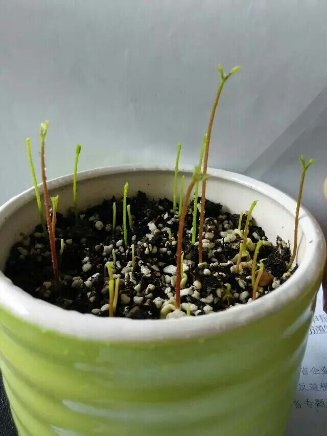 整齐地码在小花盆里,上面薄薄地覆盖一层营养土,每天喷水,保持一定湿度。