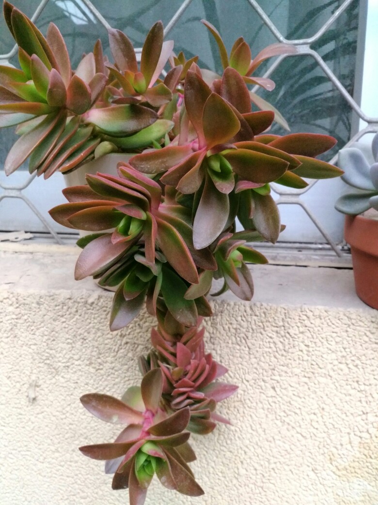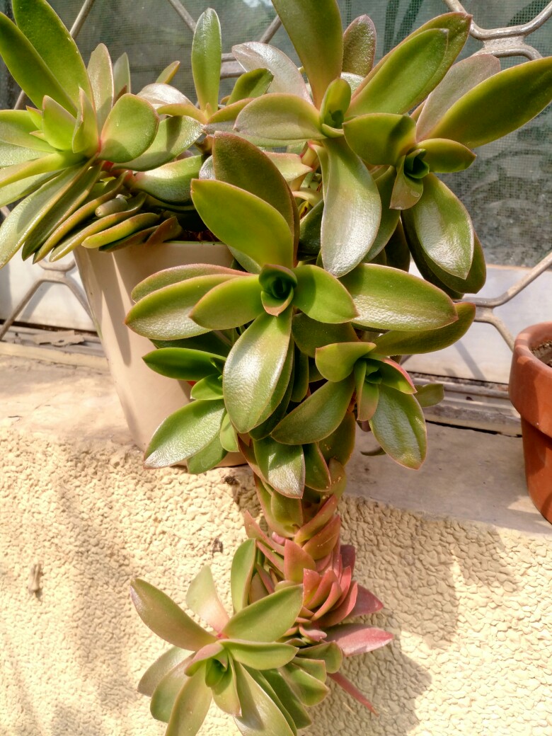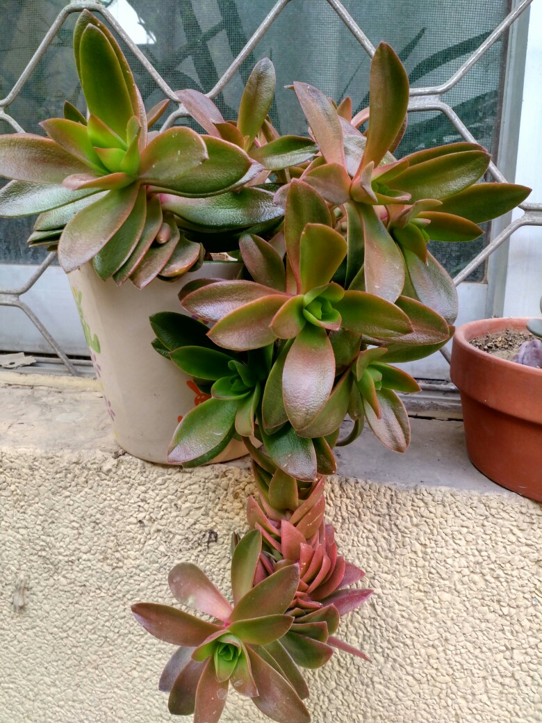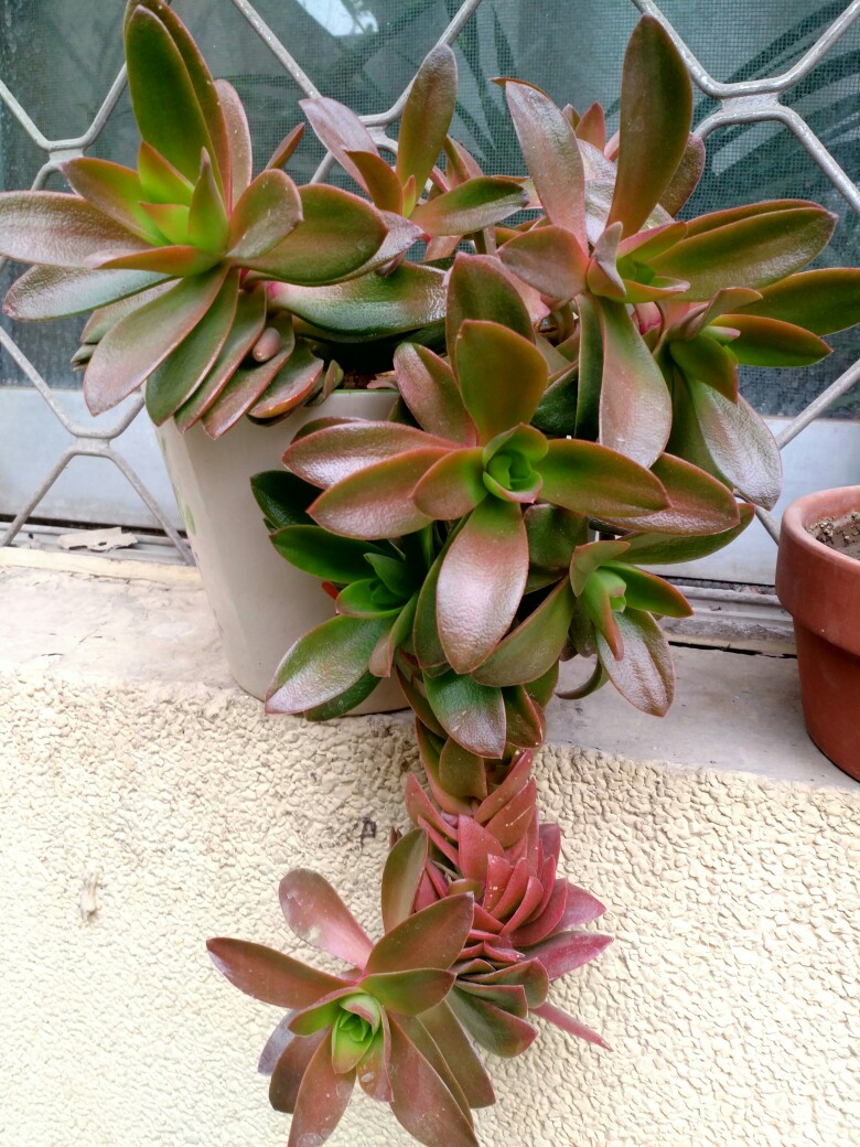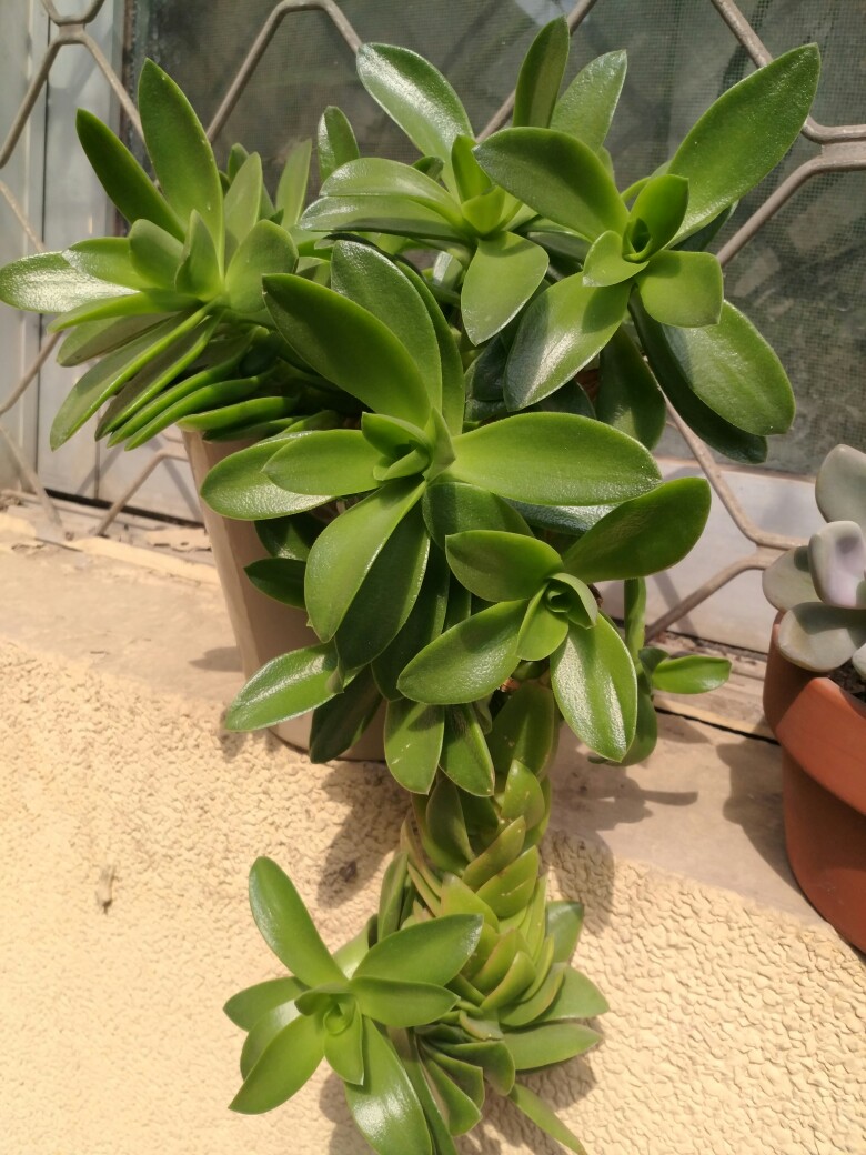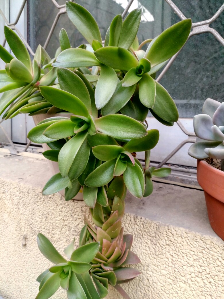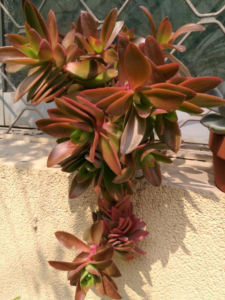 在房间的飘窗上养了一年的火祭缺少阳光,绿的发亮,感觉愧对了这个名字,今年开春把它带到了办公室的院里。