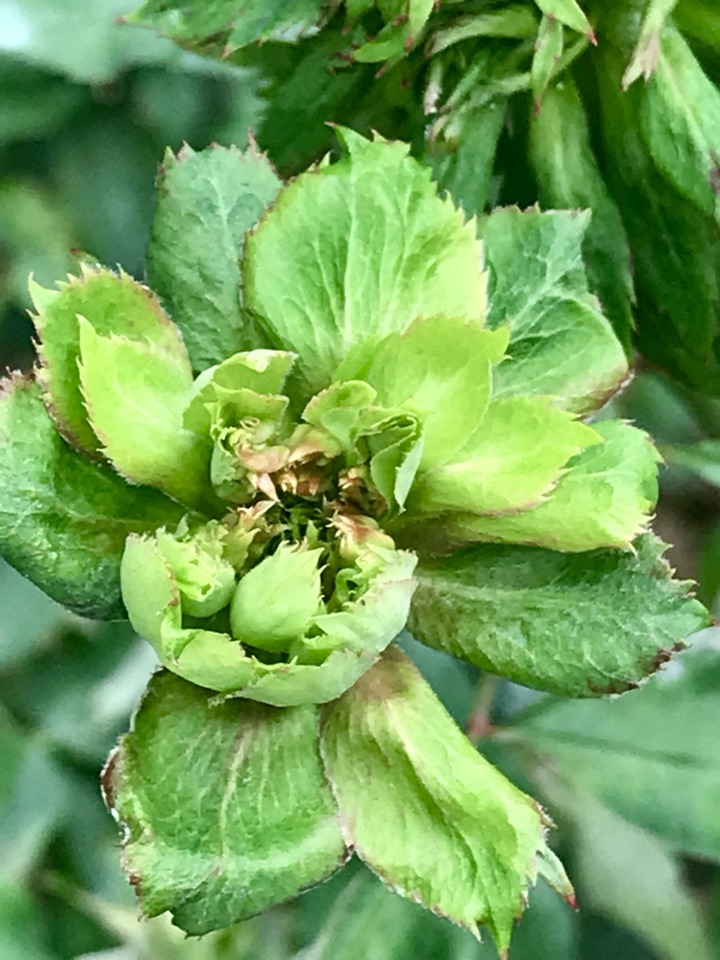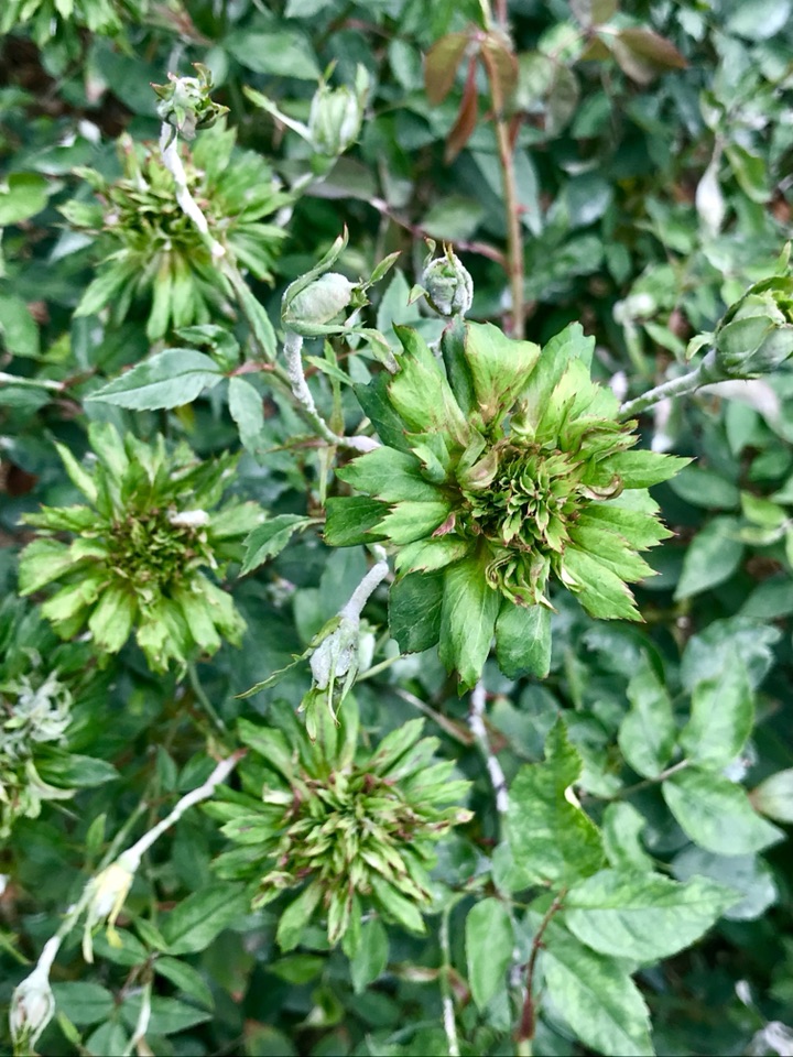 不经意的一瞥,满目的翠绿,驻足细赏,非比寻常,花与叶傻傻分不清,绿萼月季花,颠覆了记忆中月季花的印象,奇特呀!