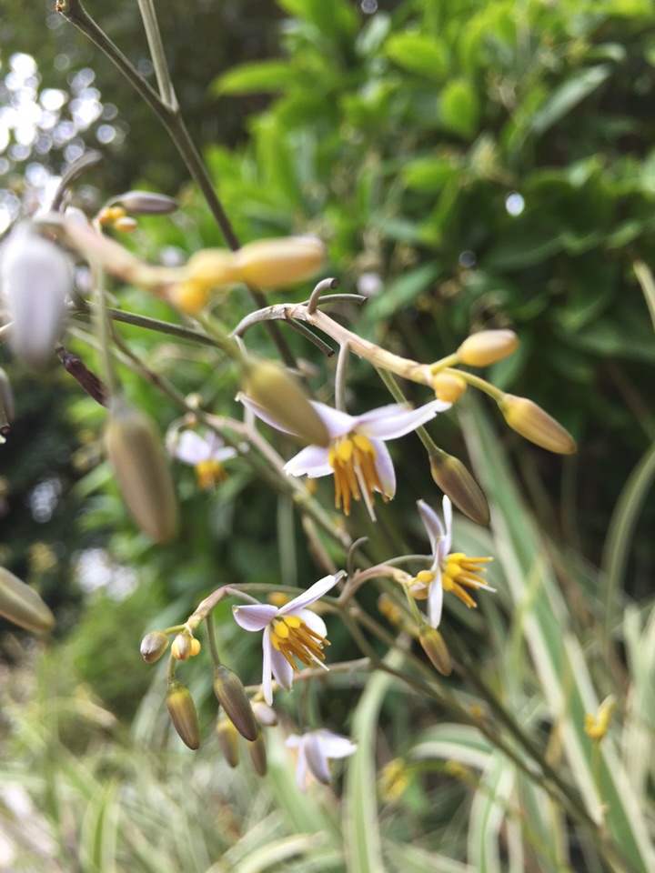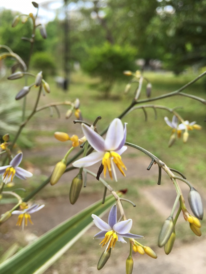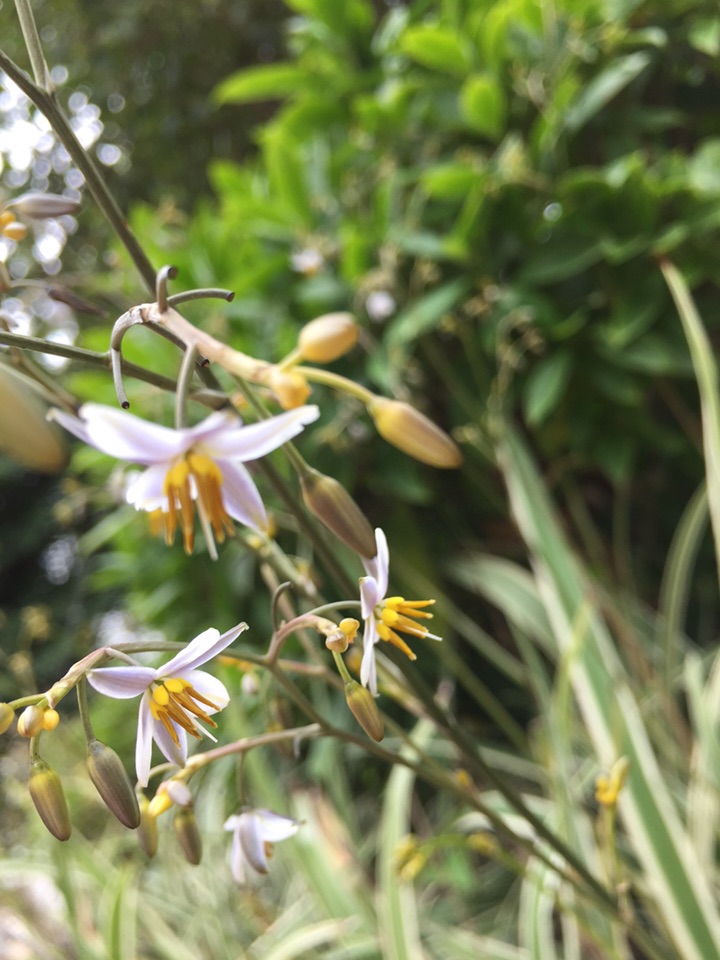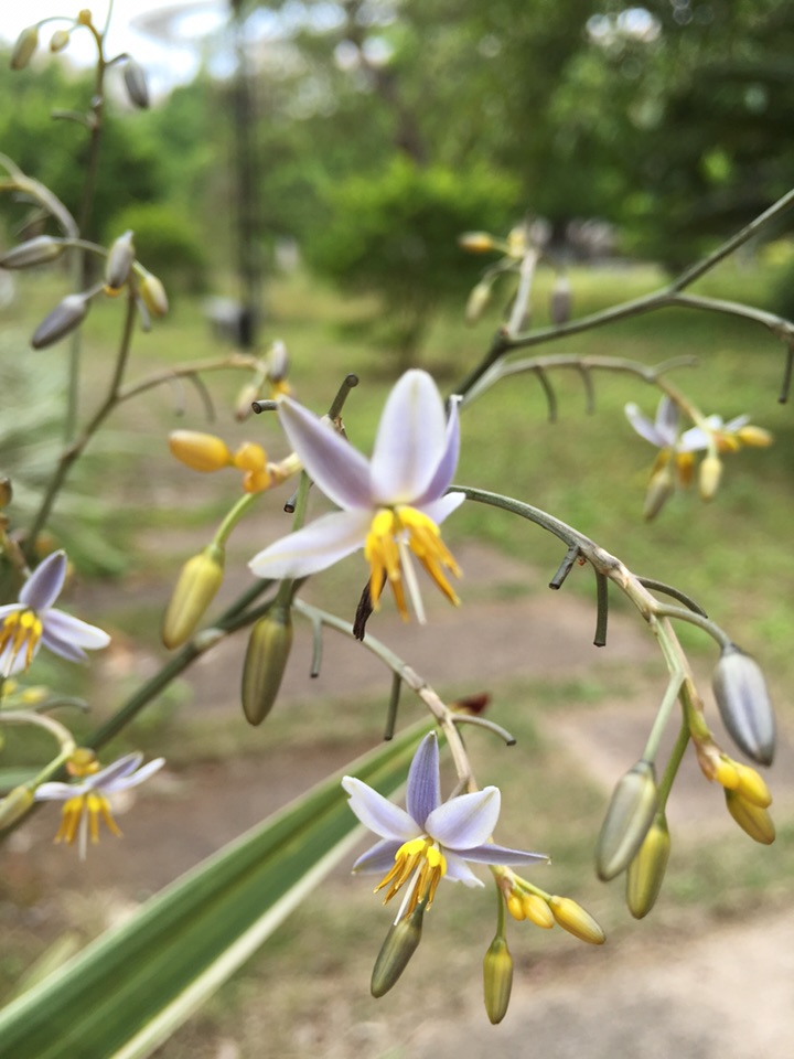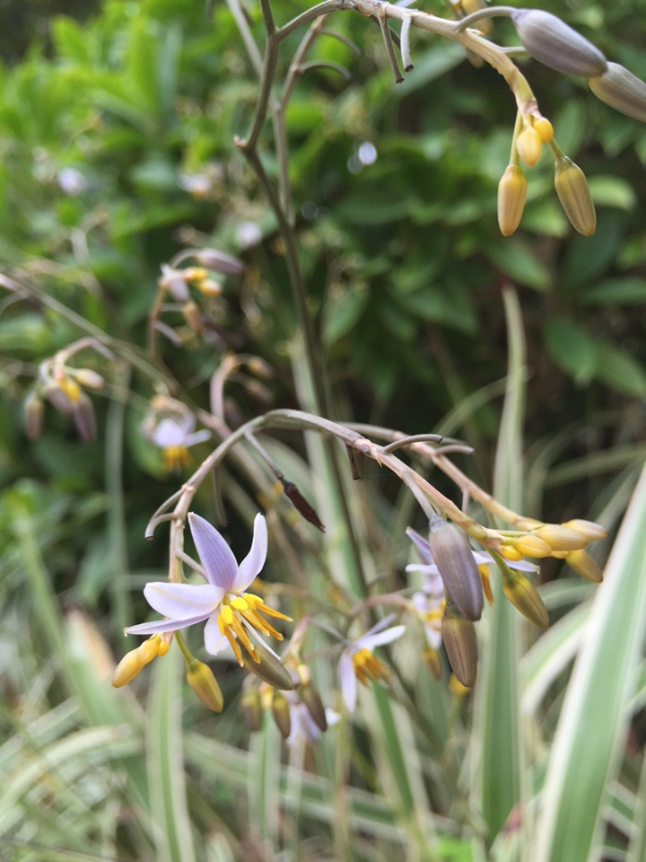 山菅儿,开着淡紫色的,小小的花儿,也竟有一份风姿在那里。