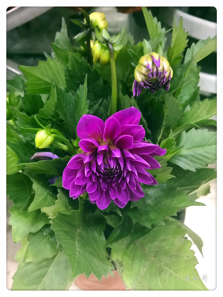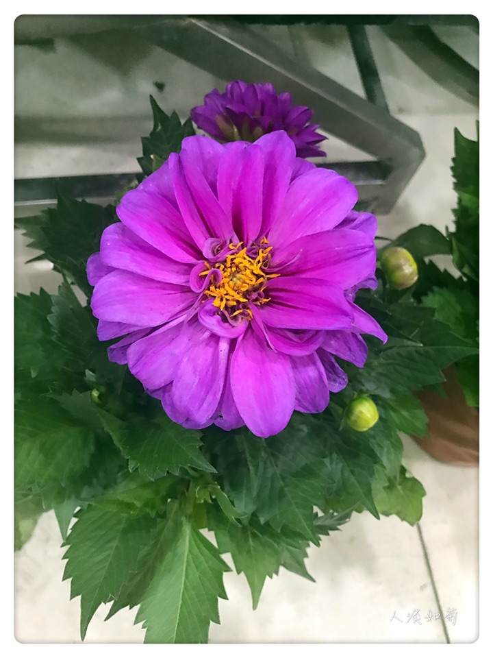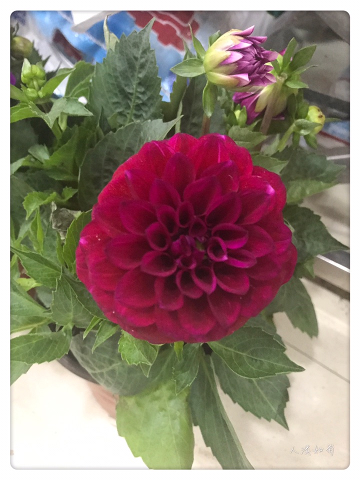 初见这矮矮的大丽花,虽是盆栽矮小但花不输高棵大丽花。