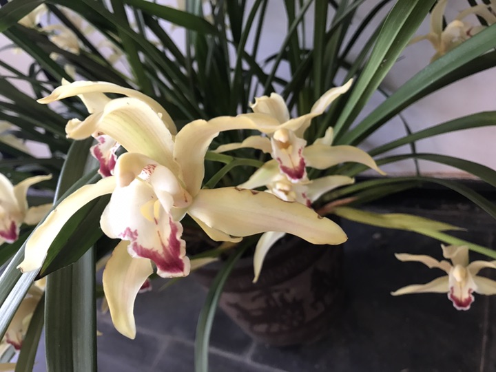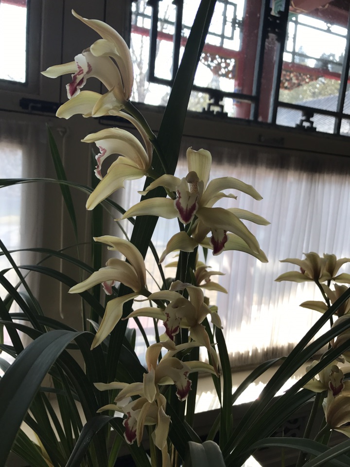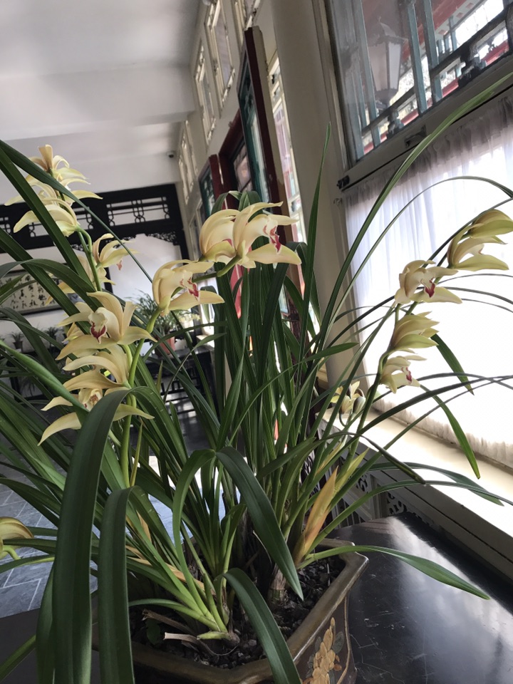 兰花是中国最古老的花卉之一,早在帝尧之世就有种植兰花的传说。古人认为兰花“香”、“花”、“叶”三美俱全,又有“气清”、“色清”、“神清”、“韵清”四清,是“理想之美,万化之神奇”。碧玉兰是附生植物,花如其名,小家碧玉,花葶从假鳞茎基部穿鞘而出,近直立;总状花序具10-20朵或更多的花,萼片和花瓣苹果绿色或黄绿色,有红褐色纵脉,唇瓣淡黄色;花瓣狭倒卵状长圆形。