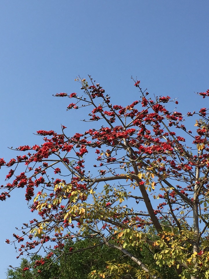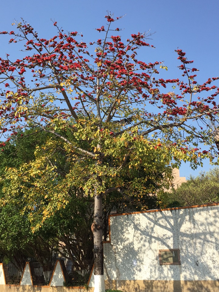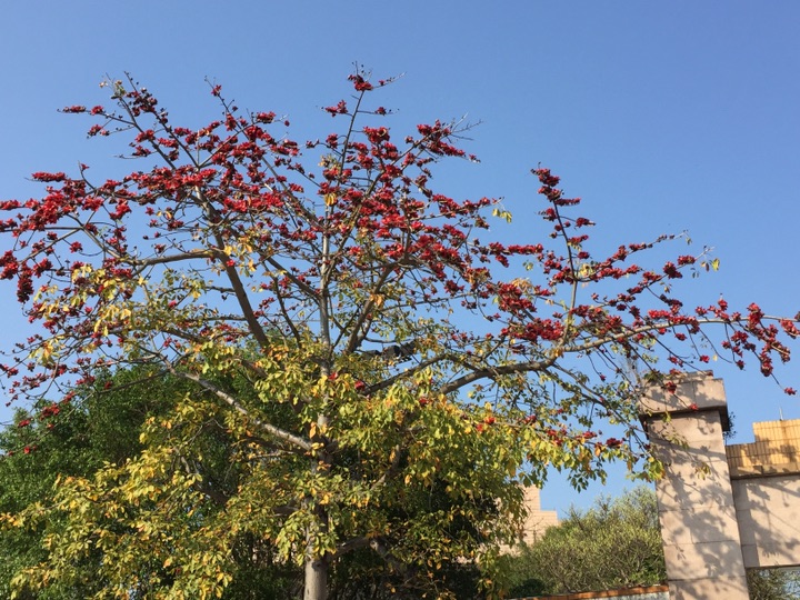 经过学校门囗,发现那棵木棉树已是满树繁花,枝头上密密匝匝的花儿,红的惹眼。可惜,树太高了,手机拍照不好拍。(20180305)