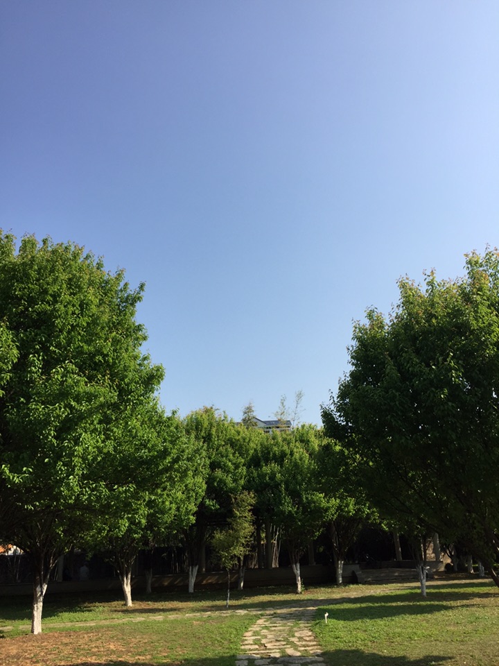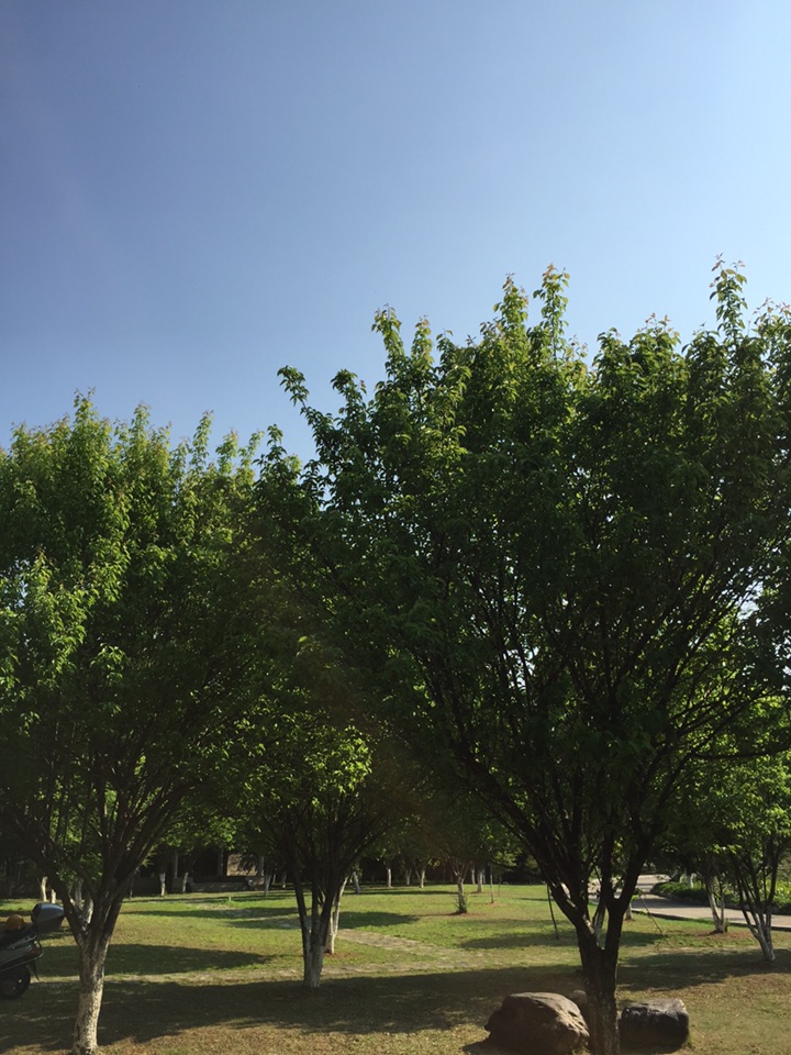 午后,再次来到梅园。只见满园梅树枝叶繁茂,叶子随风舒展,已是一派夏日风情。