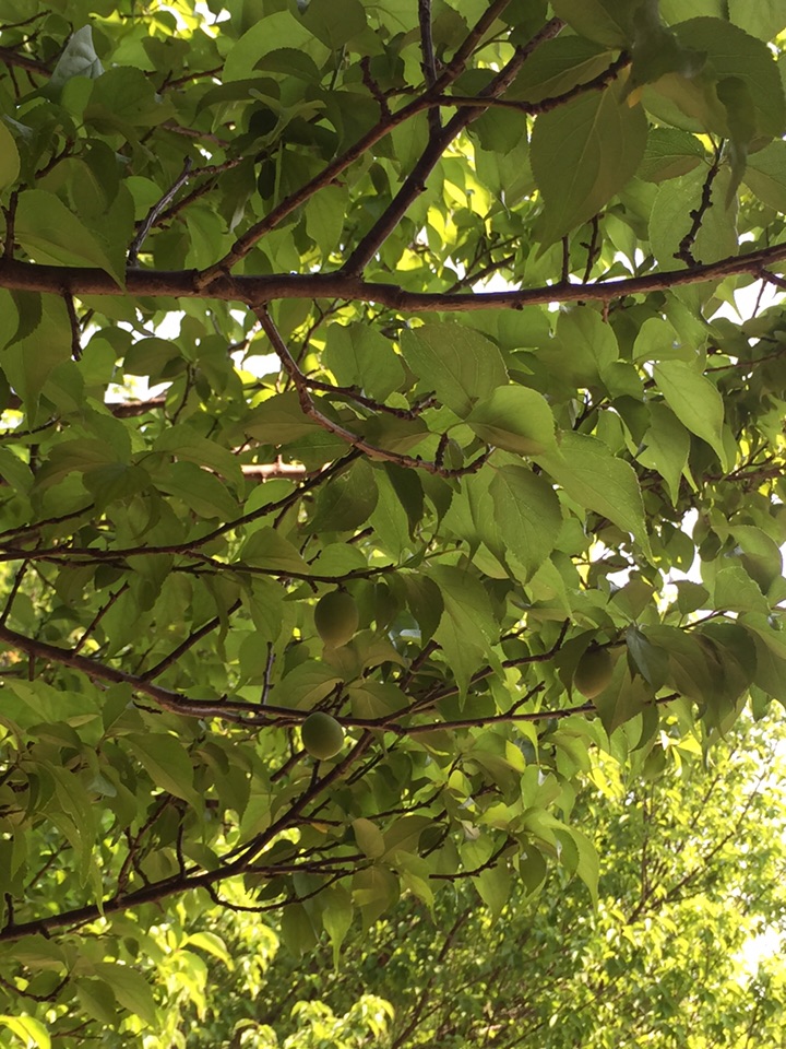 站在树下细细寻觅。满树枝叶中梅子点缀其间,已有拇指般大小,未知成熟时是何滋味?😄