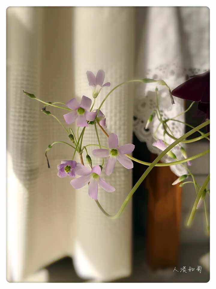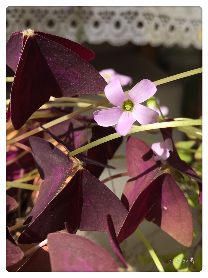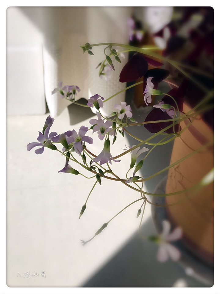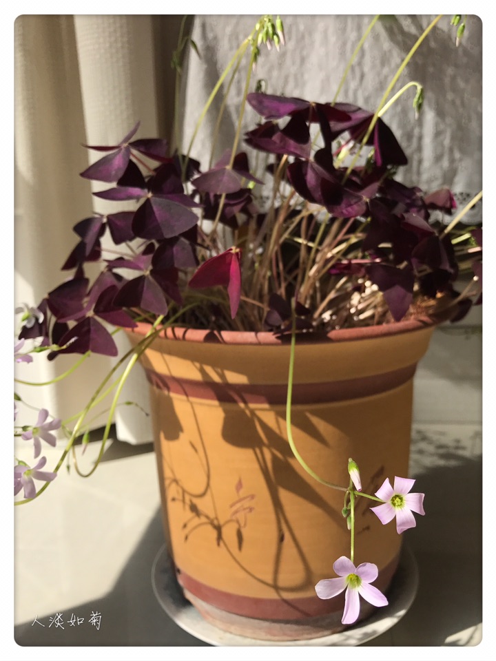 洒满阳光的阳台上有一盆盛开的紫叶酢浆草是很幸福的事儿,享受阳光、享受花开、享受北方室内的春天!