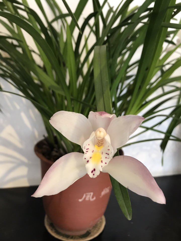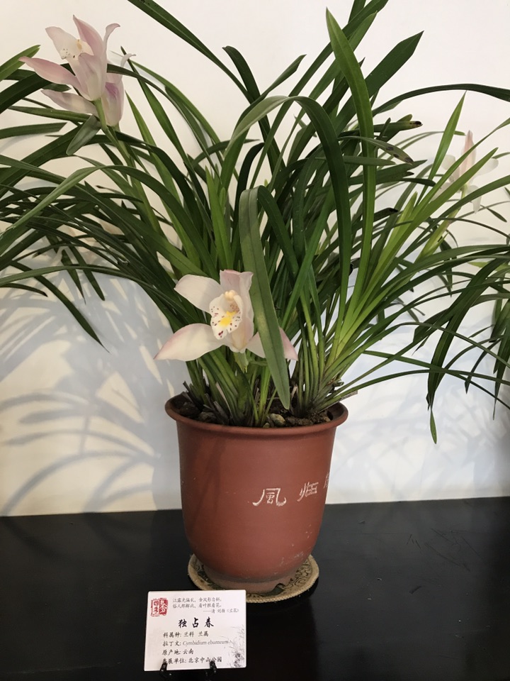 独占春为兰科兰属。与同属的中国兰(地生)不同,为附生兰花中的虎头兰类。产中国海南、广西和云南,尼泊尔、印度、缅甸也有分布。春节前后开花,花期较长可达一月之久,独占春的花箭是直立或稍倾斜,常是一支花箭有两朵兰花,一前一后似两只燕子相伴展翅高飞。故独占春又有“双燕齐飞”或“双燕迎春”的美称。广州人叫“双飞燕”,花箭高约30厘米,花朵硕大,其直径约10厘米,萼也长,瓣披长形,每边长约6厘米,宽2厘米,故属大型花。花色通常是白色,边缘略粉,中脉淡黄,有丁香香味,但花香很淡。