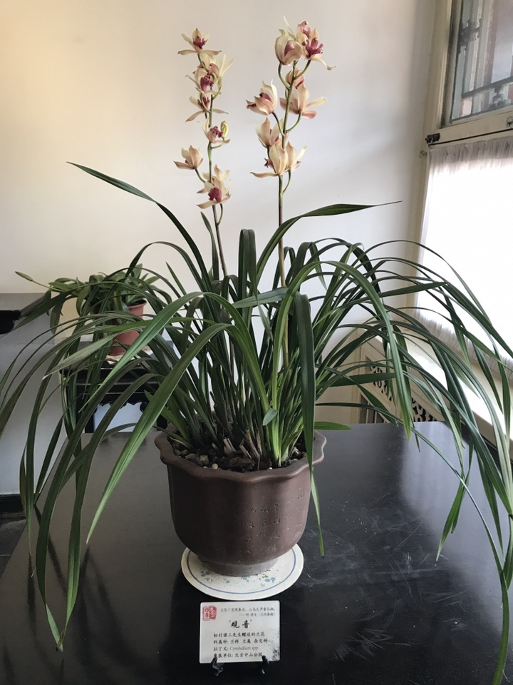 百度搜索观音兰花只出来“观音兰”,“观音素”两个词条介绍,纵观花叶跟这兰花相差甚远,故不得更多了解。标签上除了介绍说是松村谦三先生赠送的兰花再配“观音”二字也只注明是兰科兰属杂交种,并附诗两句。在此我把全诗找出来与大家分享一下