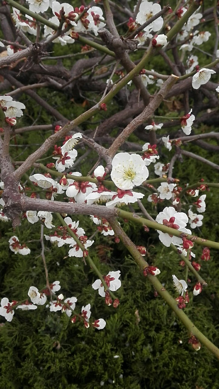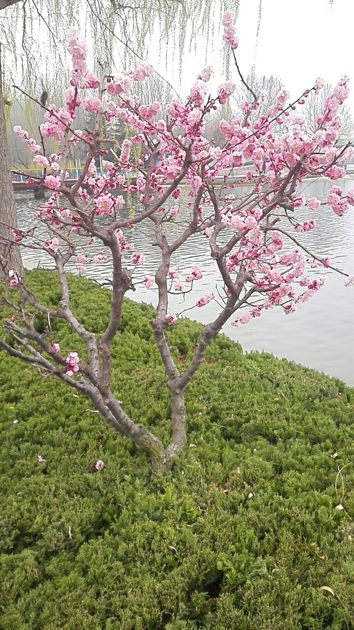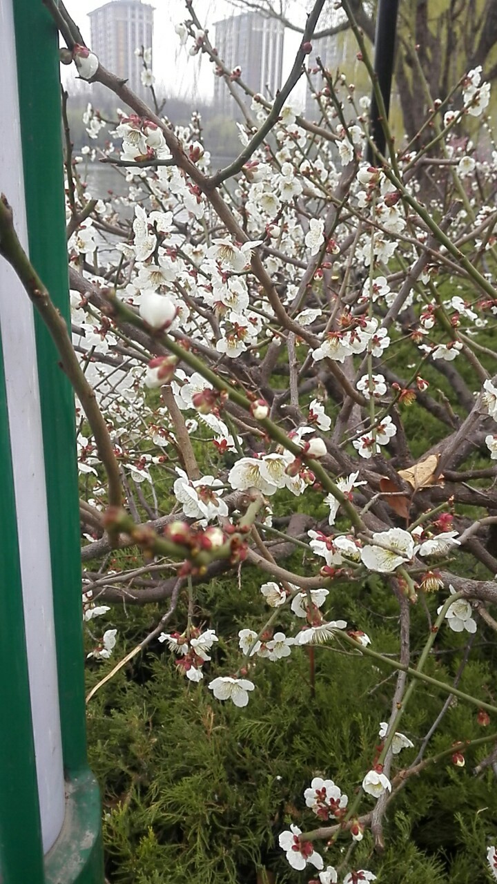 瞬间灵犀,南北差异,昨日河边踏柳,梅花含苞!遂劝慰振然,莫悲遗憾,梅开北方,拍照共赏!