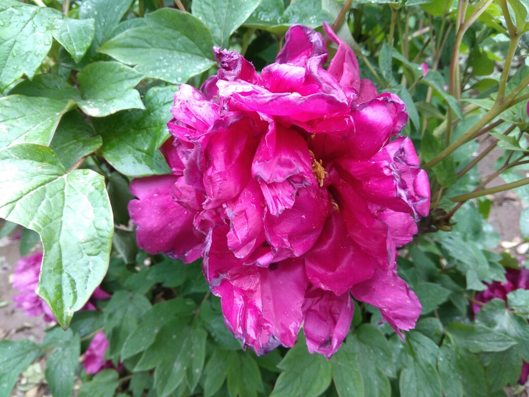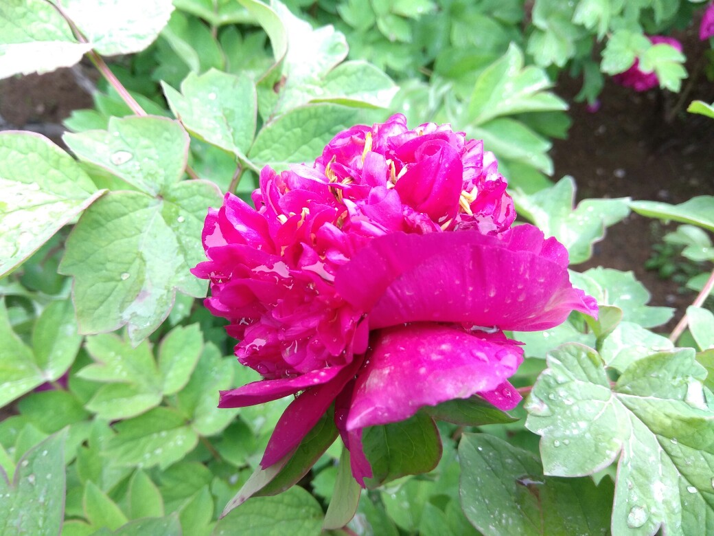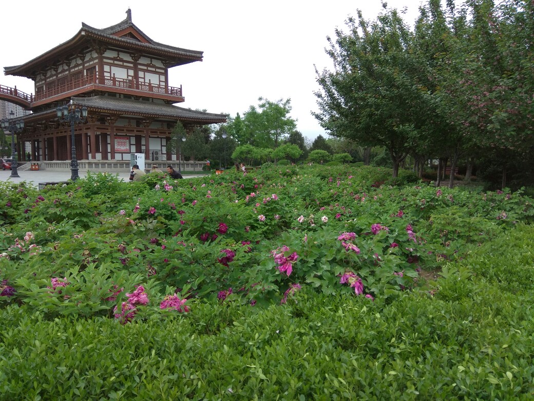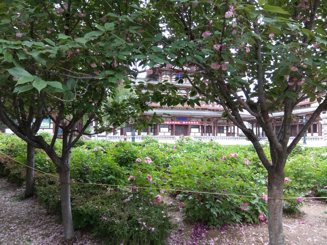 青龙寺的牡丹花已开,这是雨后的牡丹花。