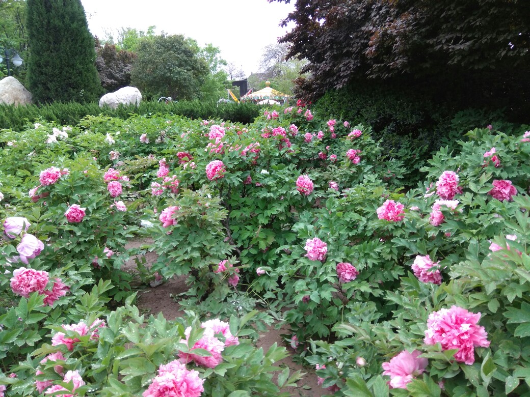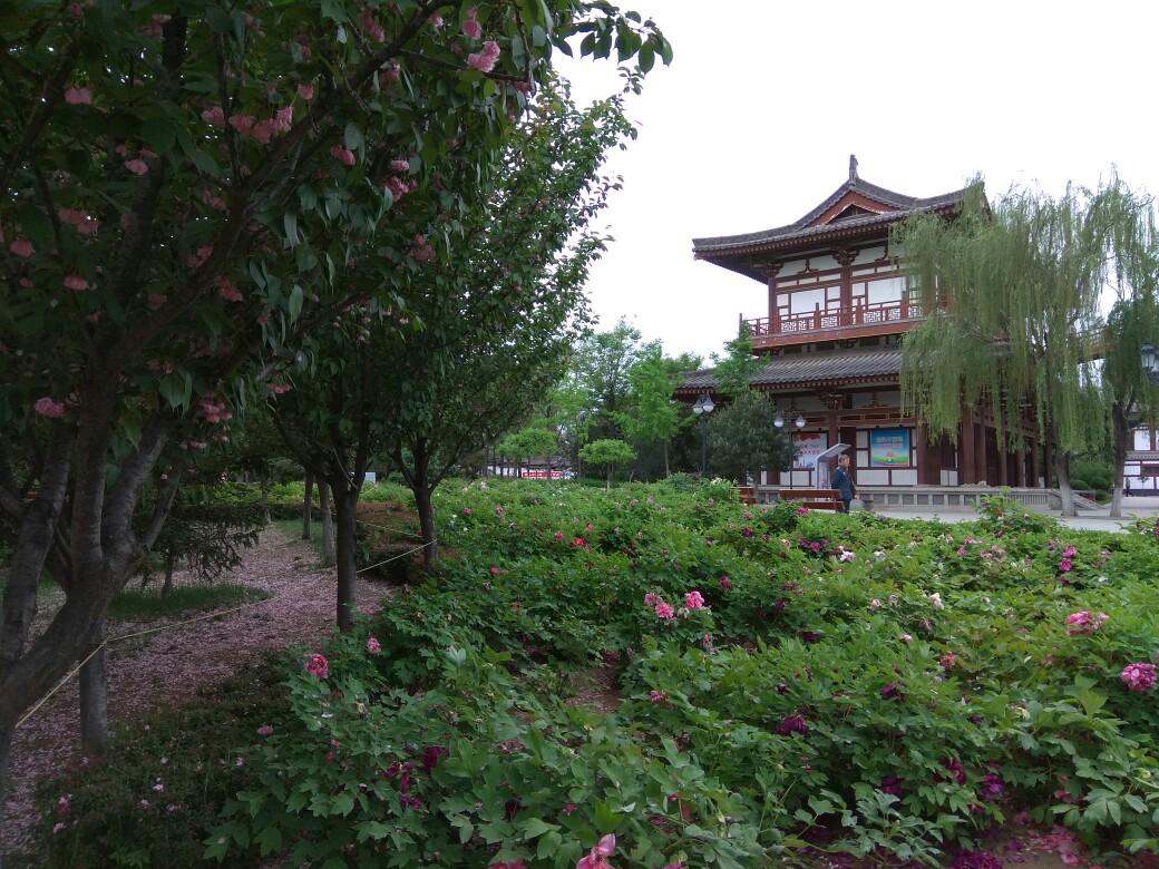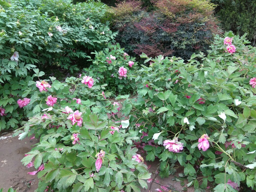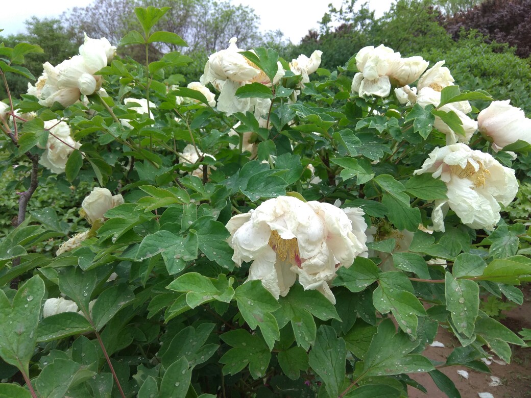 青龙寺的牡丹花已开,这是雨后的牡丹花。