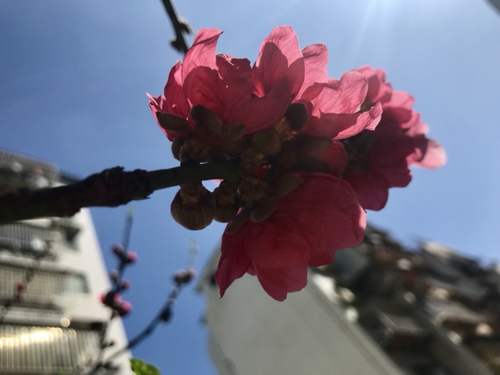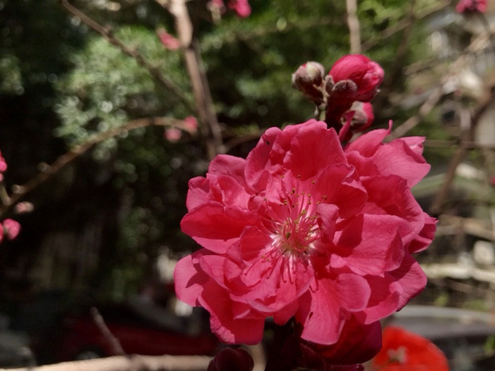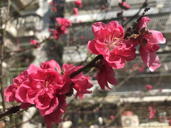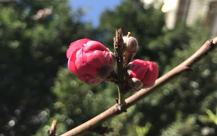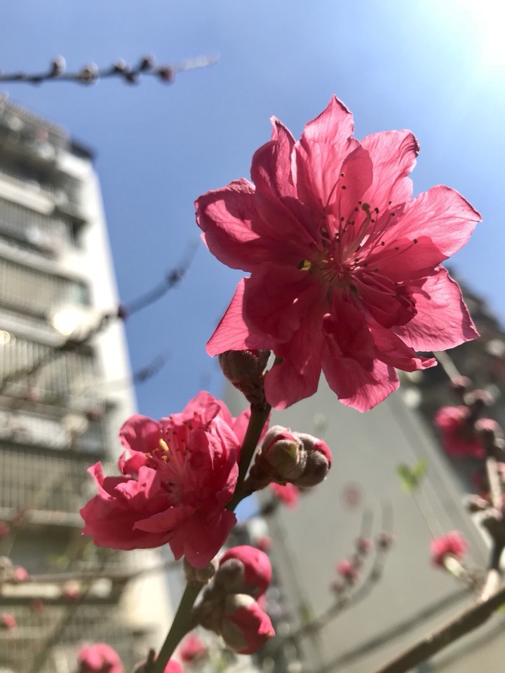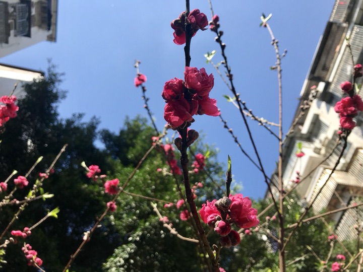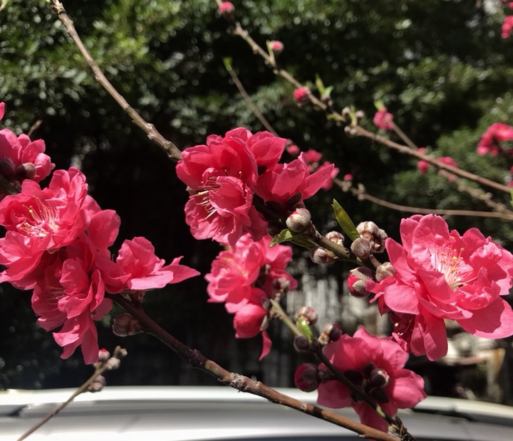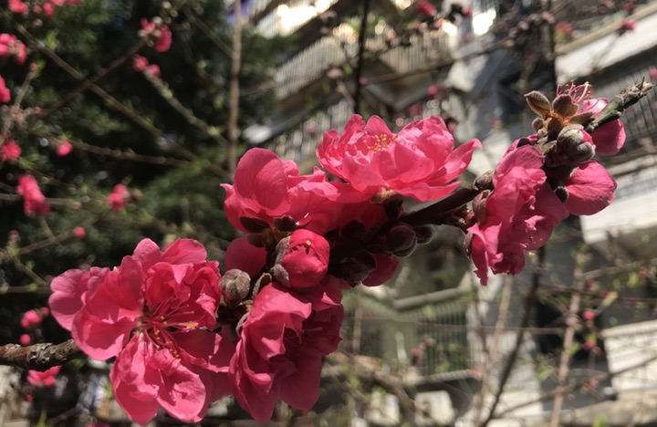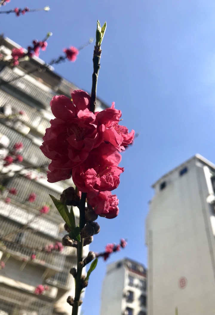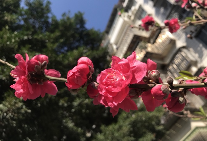 小区里的碧桃,开得灿烂如火