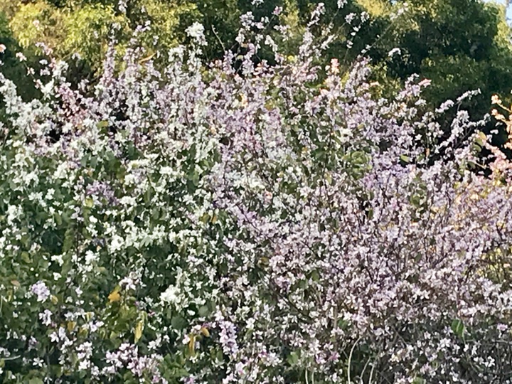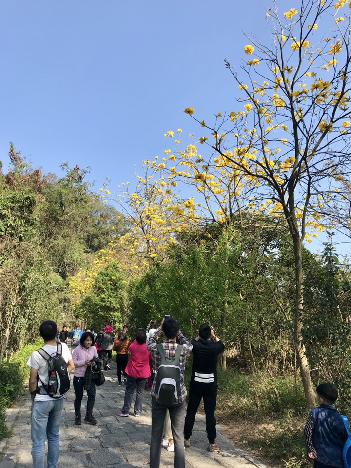 深圳绿道梅林段,是原特区内,被一道铁丝网分成关内、关外,由以前边防部队建设的,用麻石铺成的巡逻道,现在是郊野公园,一路花开,一路芬芳,一路春光,一路春色。