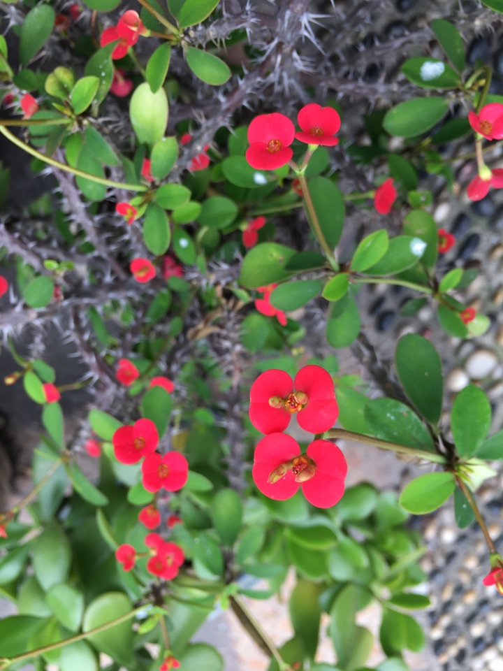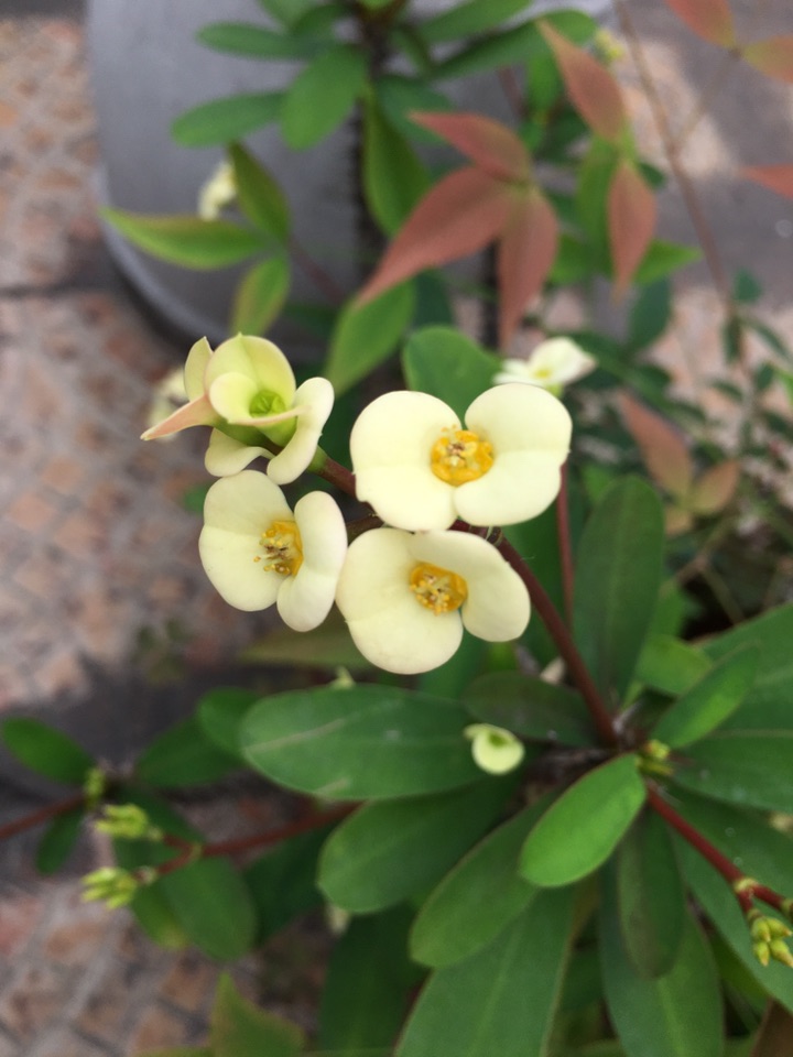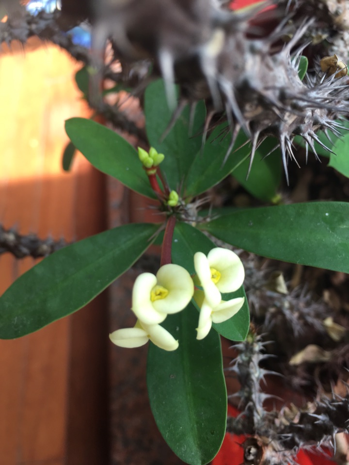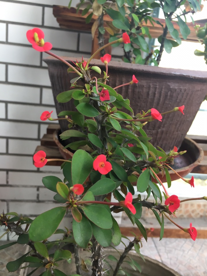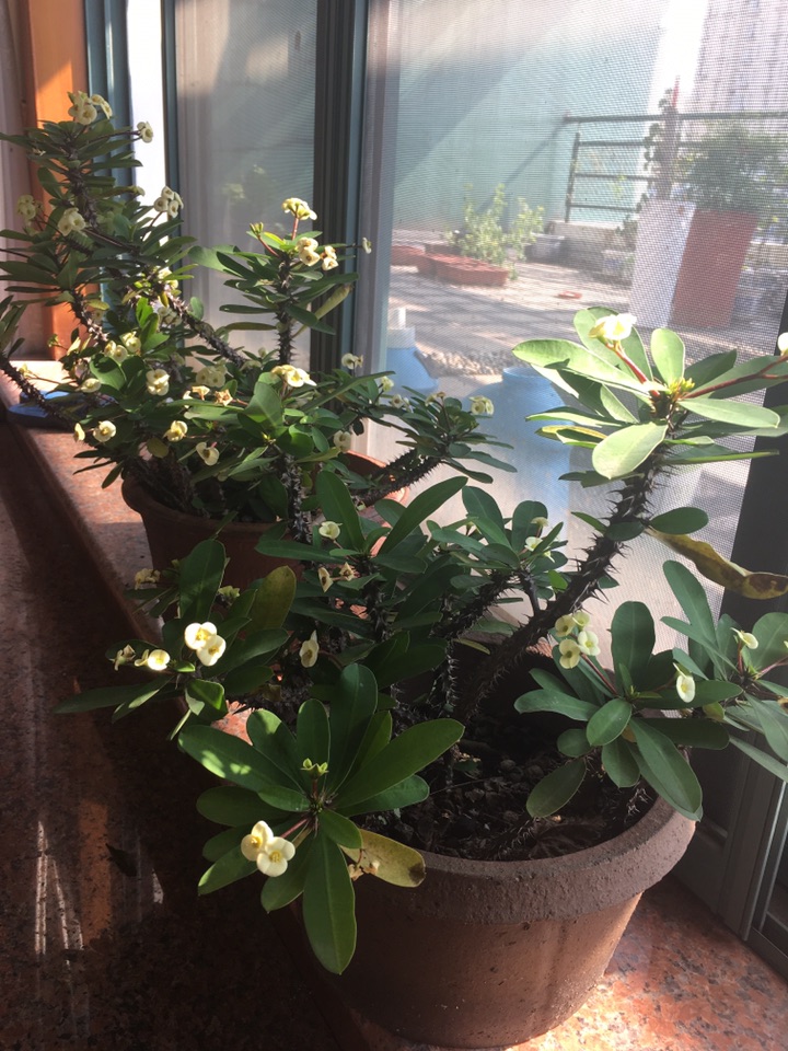 多年前就开始养虎刺梅,是乳白色的,后来又偶然得到一株红色的。虎刺梅花小,低调,但是一年四季花开不断,这里刚开那里又冒出一枝。