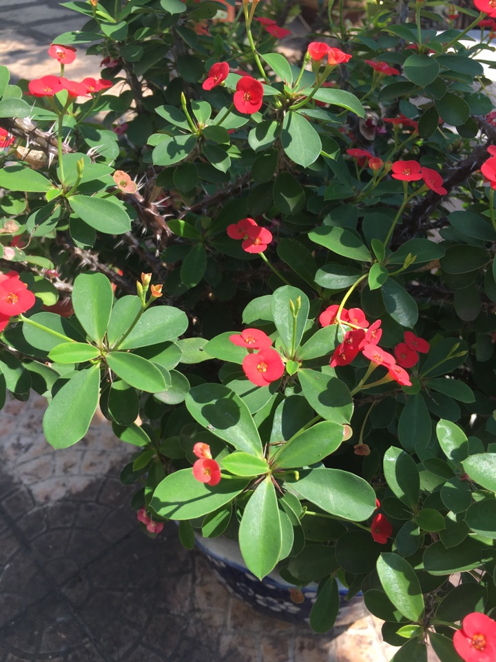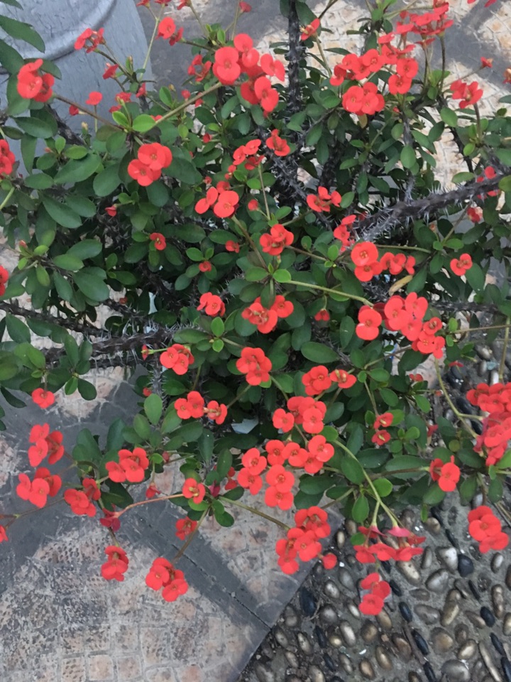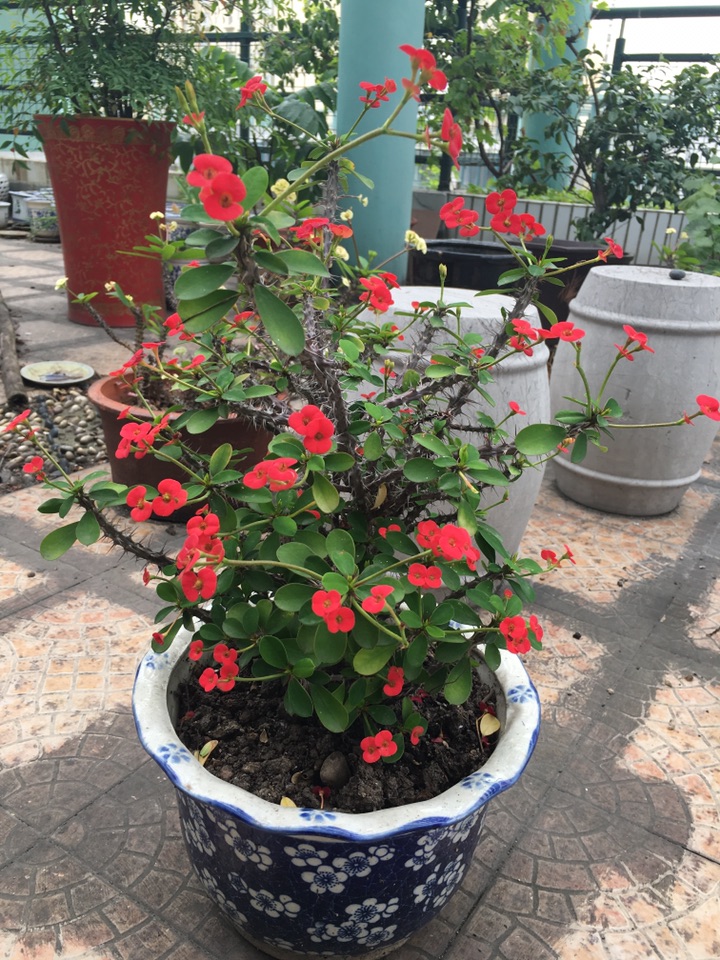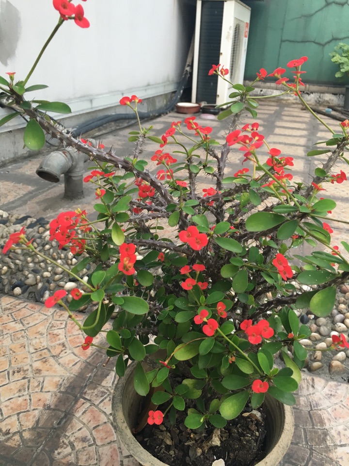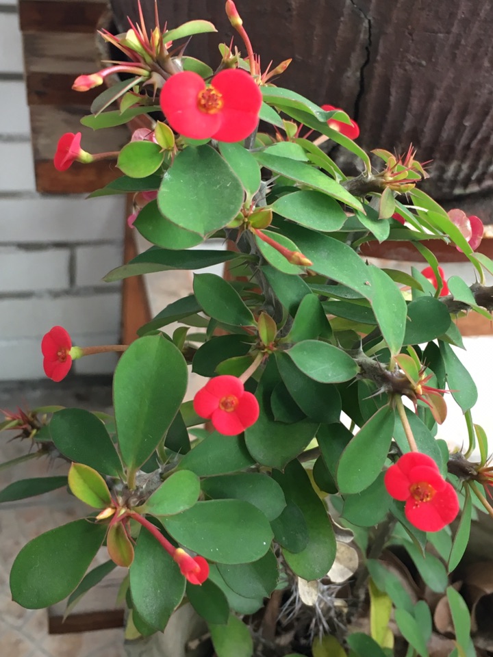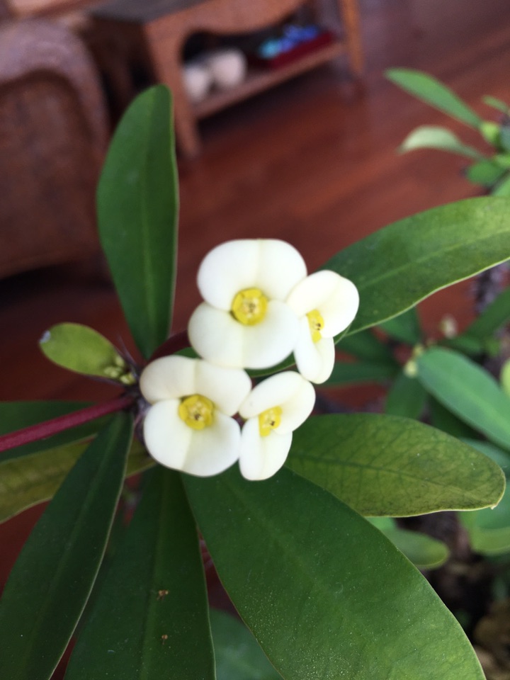 多年前就开始养虎刺梅,是乳白色的,后来又偶然得到一株红色的。虎刺梅花小,低调,但是一年四季花开不断,这里刚开那里又冒出一枝。