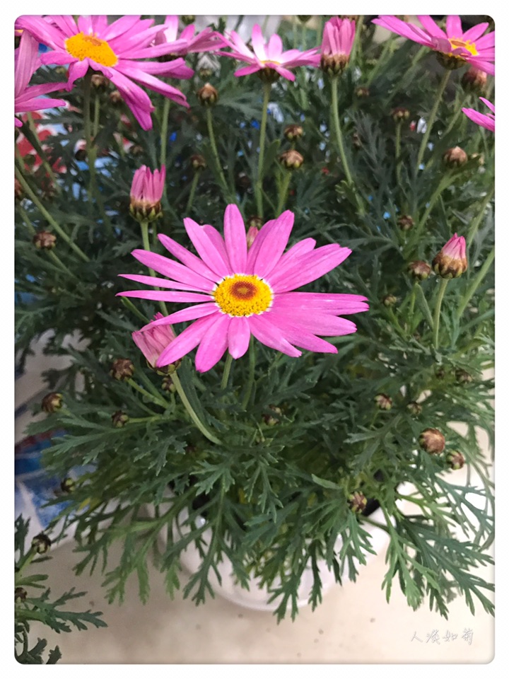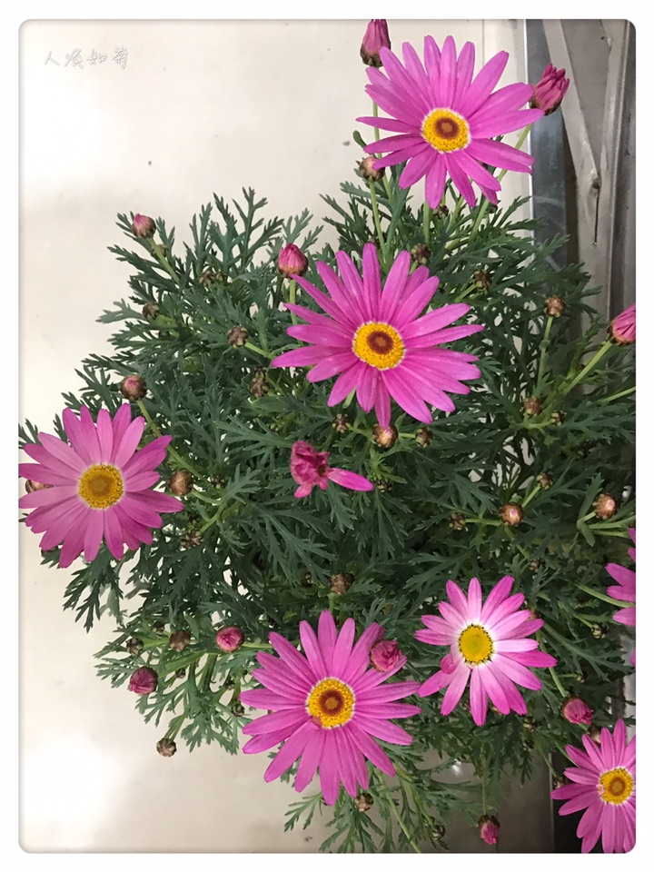 木茼蒿(学名:Argyranthemum frutescens (L.) Sch.-Bip)别称木春菊、法兰西菊、蓬蒿菊、茼蒿菊。为灌木,高达1米。枝条大部木质化。叶宽卵形、椭圆形或长椭圆形。头状花序多数,在枝端排成不规则的伞房花序。两性花瘦果有1-2条具狭翅的肋。花果期2-10月。原产北非加那利群岛。