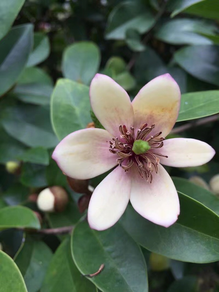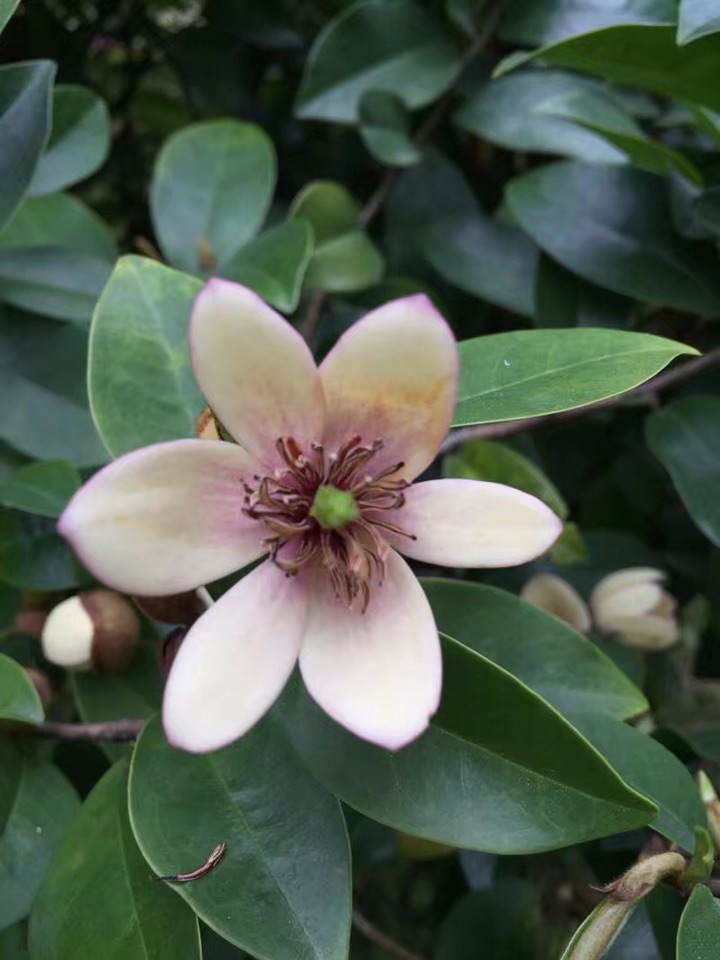 美,还有这样的含笑呢。我见过开大朵白花的。
