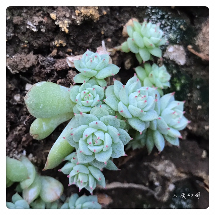 初见静夜,有些喜欢,或许是因为那红红的尖尖和石莲花属植物叶子完美的排列。