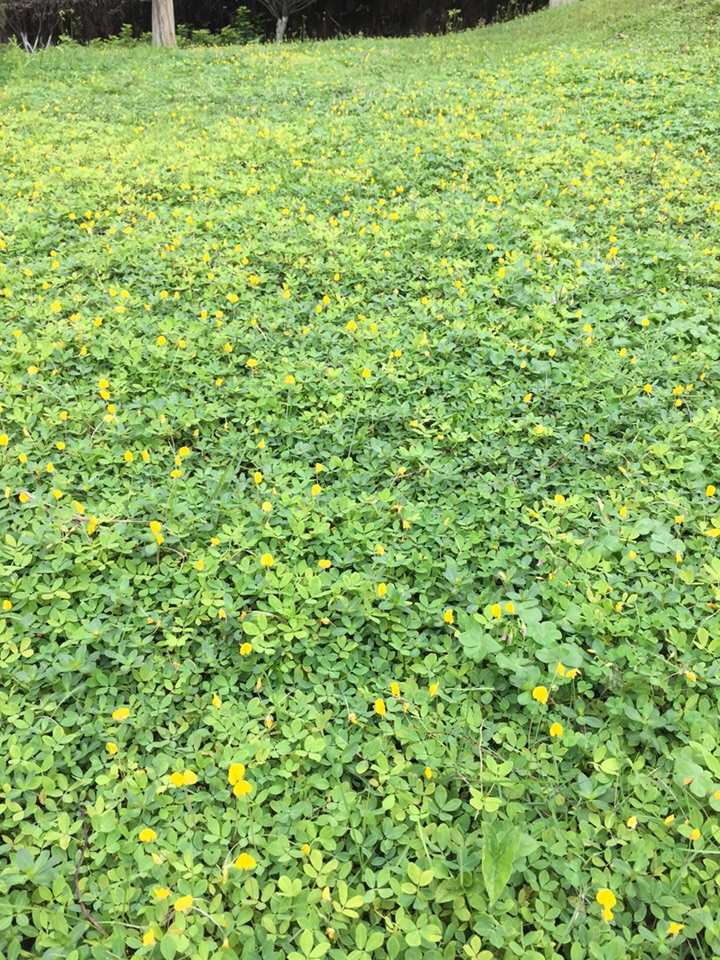 河堤上,蔓花生黄色的小花儿摇曳着,在春风春雨的滋润下,已是蓬勃的一大片。