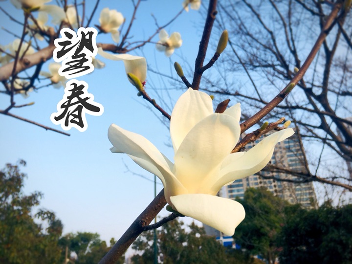去公园散步的路上,其实也是在寻找,寻找一朵春天的“光明”。看,那些白的玉兰,像一只只展翅欲飞的白鸽,格外美丽。而我习惯叫她望春。在我的心中,她貌若淑人,似古时旧画里娉婷袅娜的贵族少女,落落大方,仪态万千。